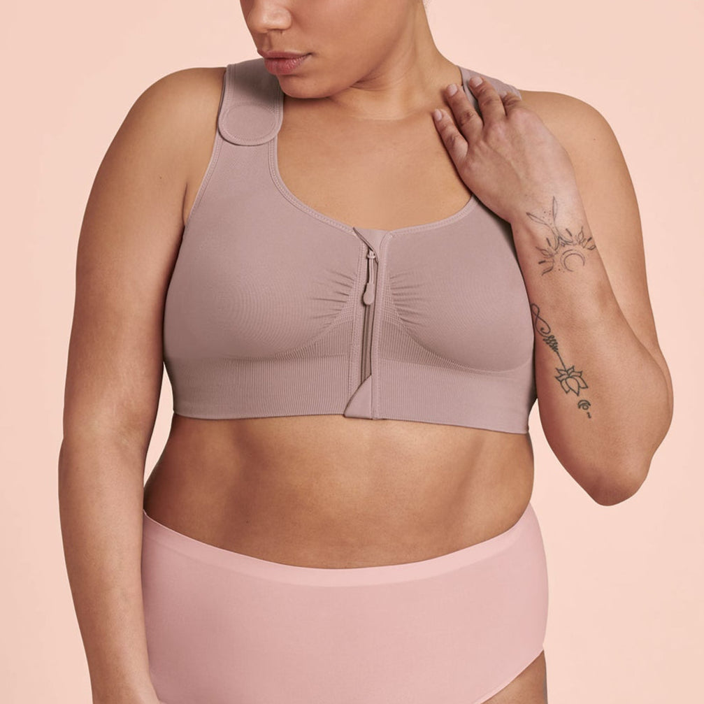 Anita Almeria etukiinnitteinen tukiliivi 4108X vetoketjulla on tarkoitettu rintojen leikkauksen jälkeiseen paranemis- ja toipumisvaiheeseen. Kompressioliivi antaa kunnon tukea rinnoille ja kudoksille. Värinä Mauve ruskean roosa.