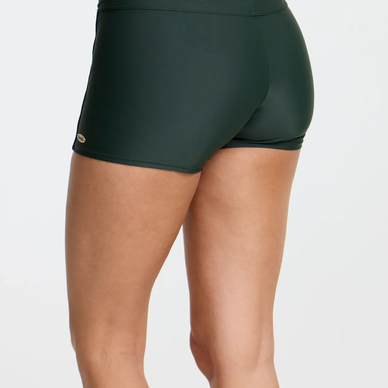 Damella Demi shortsi-bikinihousu 32220. Koe mukavuus bokserimallisessa bikinialaosassa. Rentoon ja moderniin, hieman peittävämpään rantalookkiin!