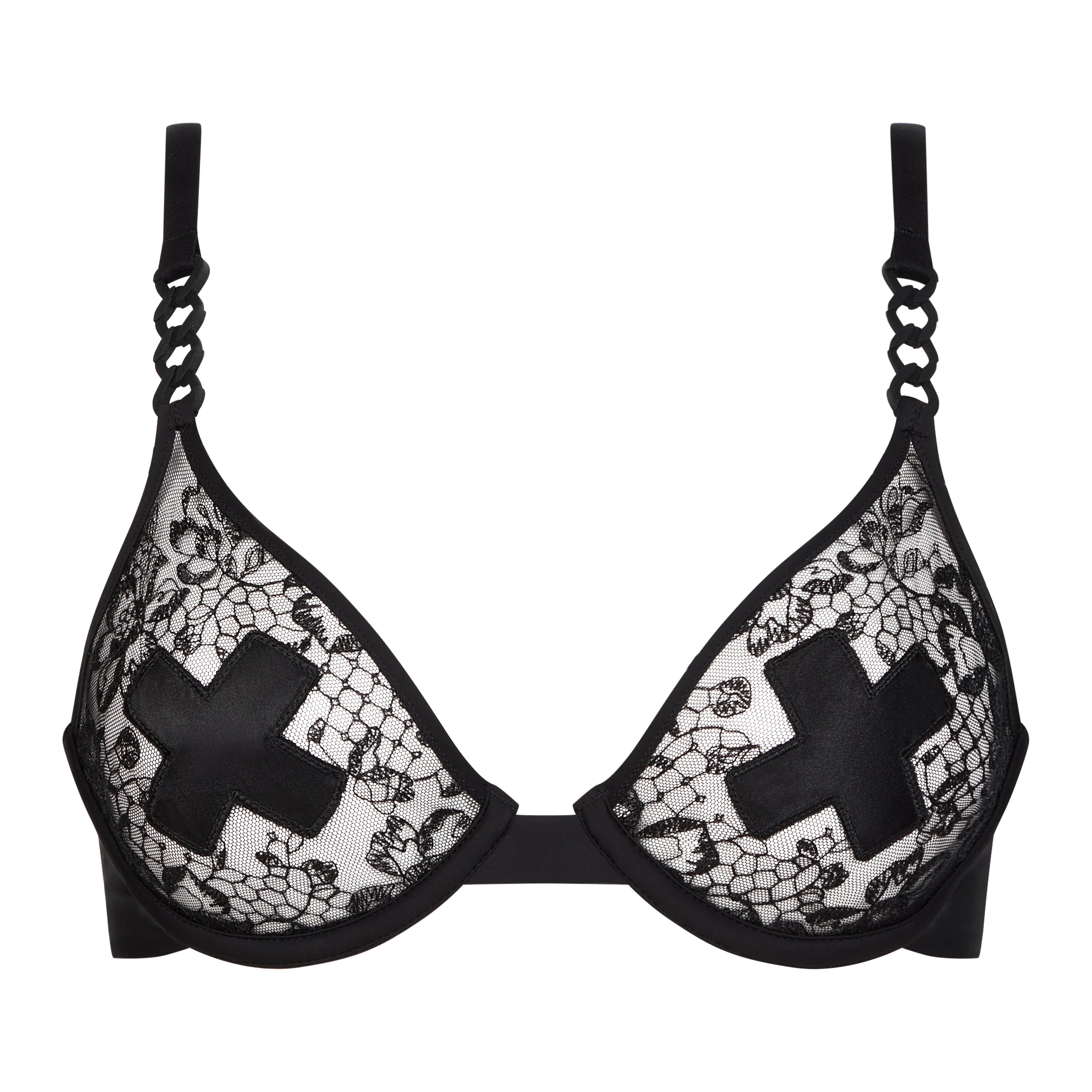Upea ja rohkean naisellinen Chantelle Xplicit -rintaliivi hurmaa ylellisellä pitsillä ja viettelevällä leikkauksellaan. Läpinäkyvät yksityiskohdat ja hienostunut viimeistely tuovat malliin modernia sensuellia tyyliä. Toppaamattomat muotoillut kupit antavat kauniin muodon ja tukevan istuvuuden, säilyttäen samalla keveyden ja mukavuuden. Täydellinen valinta, kun haluat tuntea olosi itsevarmaksi ja tyykikkääksi. Säädettävät kauniit olkaimet, joissa ketjumaista yksityiskohtaa hieman joustavasta muovista. Liivin takaosa on miellyttävän saumaton ja sileä ja siinä on hakaskiinnitys.