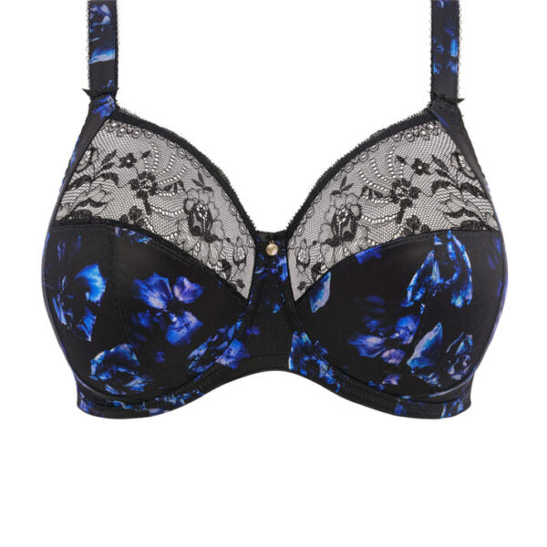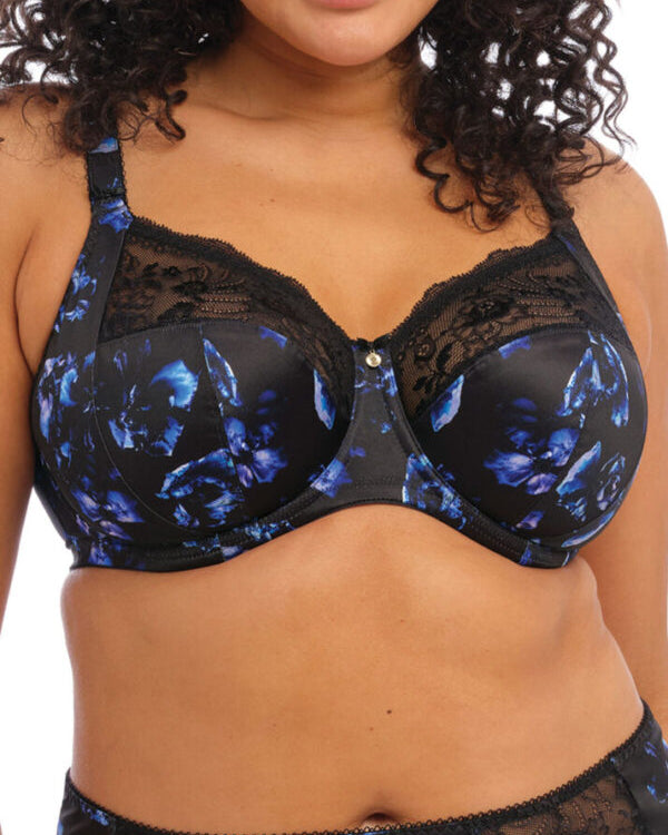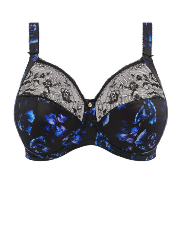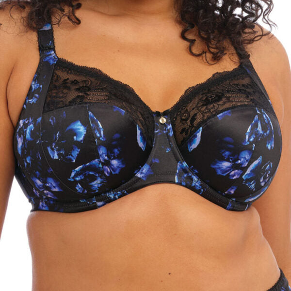 Elomi Morgan rintaliivi. Kaarituetut ja niissä on pehmeät, toppaamattomat kupit. Kuppien nelipalainen leikkaus antaa rinnalle kauniin pyöreän muodon ja sivutukipala ohjaa rintaa eteenpäin. Kokokuppinen malli sulkee rinnat tukevasti kokonaan sisäpuolelle ja kupin yläosan pehmeä joustopitsi takaa sen, että liivi istuu miellyttävästi myös hieman erikokoisille rinnoille ja myötäilee liikkeitäsi. Olkaimet ovat koko matkaltaan säädettävät. Edessä pieni rusettikoriste.