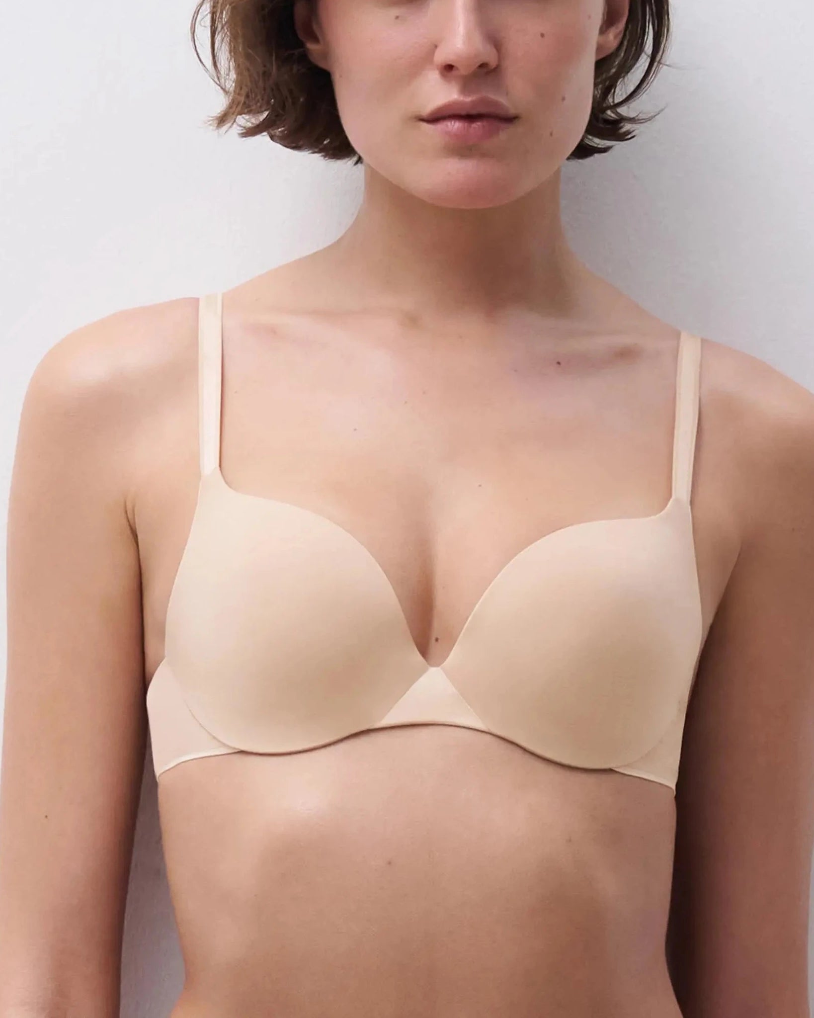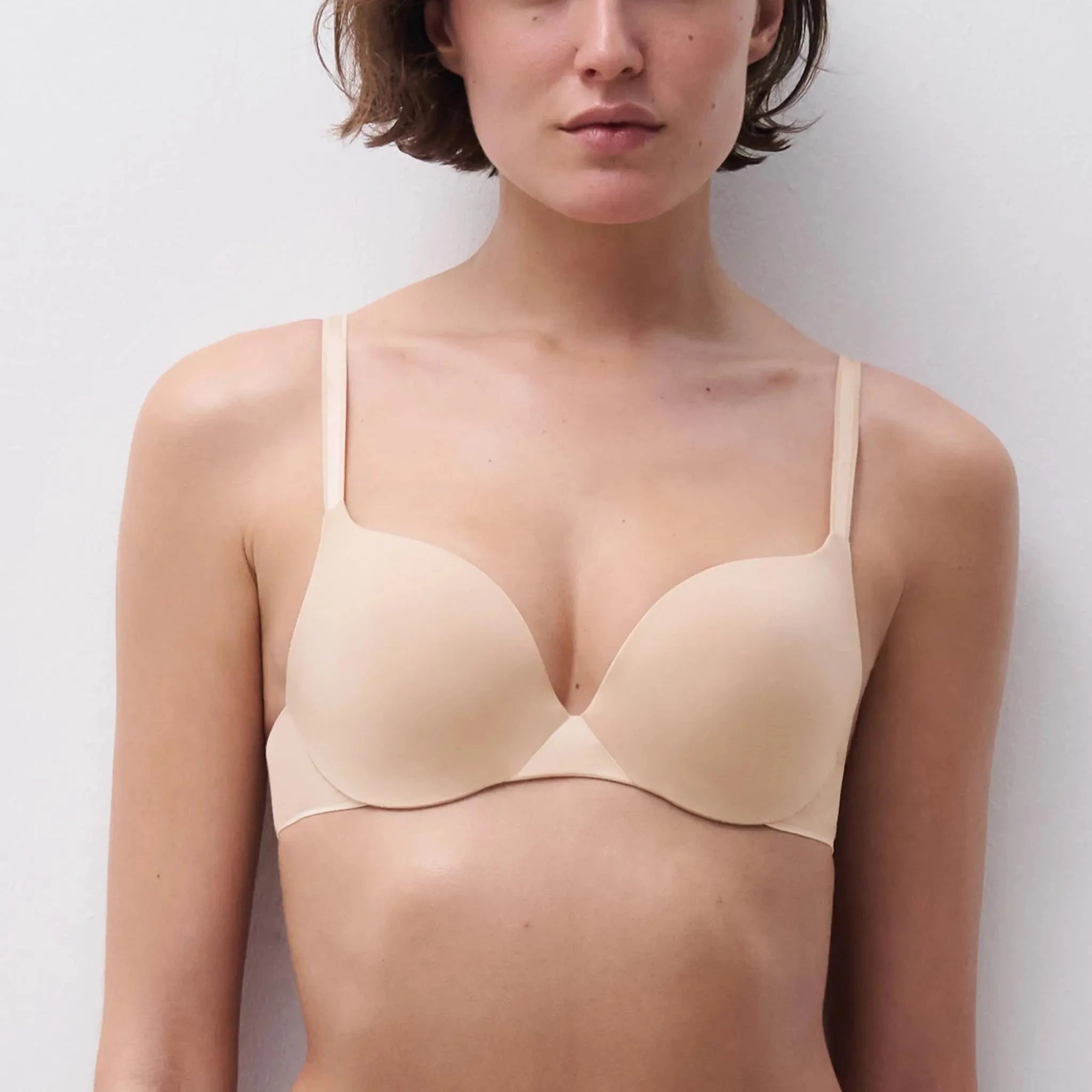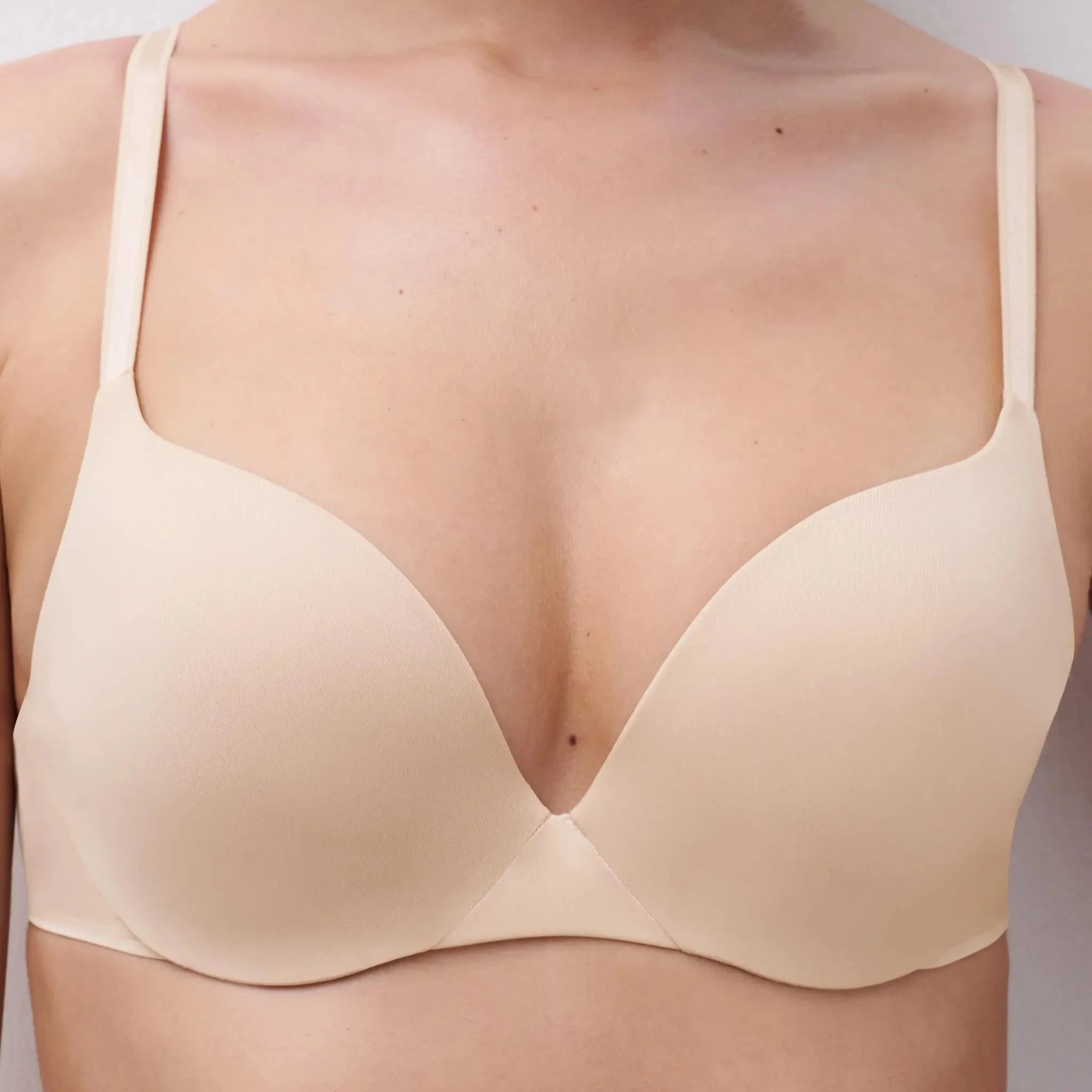 Chantelle Essential Push-up rintaliivi. Kaarituellinen rintaliivi, jossa kupin alareuna on vanhemmin topattu. Sileä liukaspintainen materiaali. Väri Golden Beige.