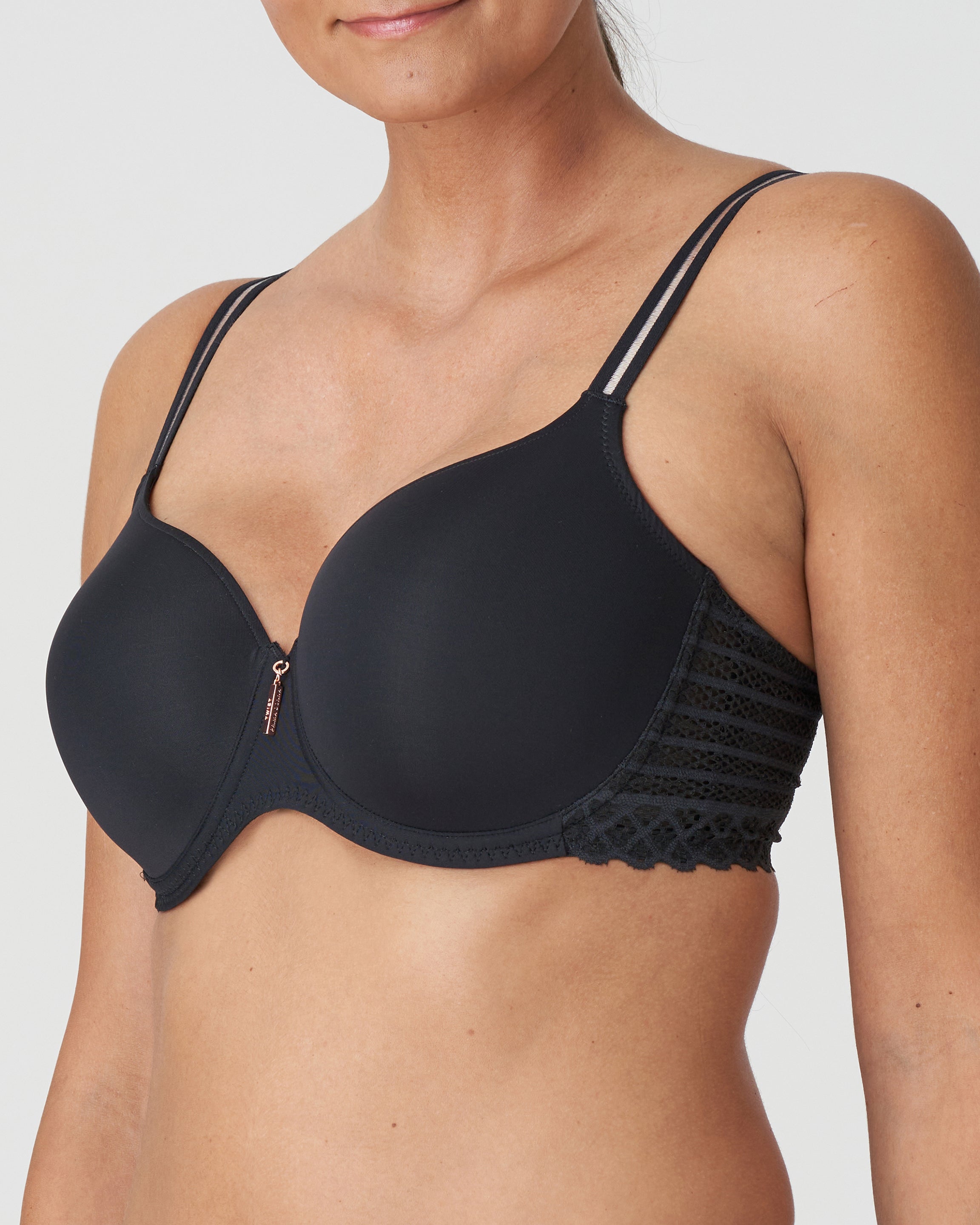 PrimaDonna Twist East End kaarituellinen topattu täyskuppinen rintaliivi. Kevyesti topattu kuppi, joka nostaa ja keskittää rintaa luoden samalla kauniin muodon. Erinomainen t-paitaliivi sileiden kuppien ansiosta. Pehmeä, roosalla taitettu nuden sävy ja kupin sileä pinta tekevät liivistä täydellisen vaaleiden, ohuempienkin vaatteiden alle. Graafista pitsiä liivin sivu- ja takaosassa. Sivuosa on hieman tavallista leveämpi ja se onkin asiakkaiden mieleen. Joustavissa olkaimissa rajaton säätömahdollisuus. Olkaimien yksityiskohtana keskellä kulkee läpinäkyvä kaistale. Olkaimet sekä sivu-/takaosa levenee aina koon suuretessa.