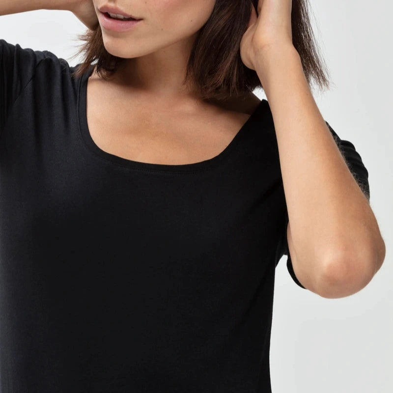 Musta Superfine Organic -sarjan lyhythihainen paita on ehdoton lisä vaatekaappiisi. T-paidan materiaali on pehmeää ja joustavaa luomupuuvilla/elastaani-sekoitusta, joka tuntuu ihanalta ihoa vasten. Pyöreä pääntie. Materiaali täyttää Öko-Tex-Standard 100- ja GOTS-sertifikaatit.