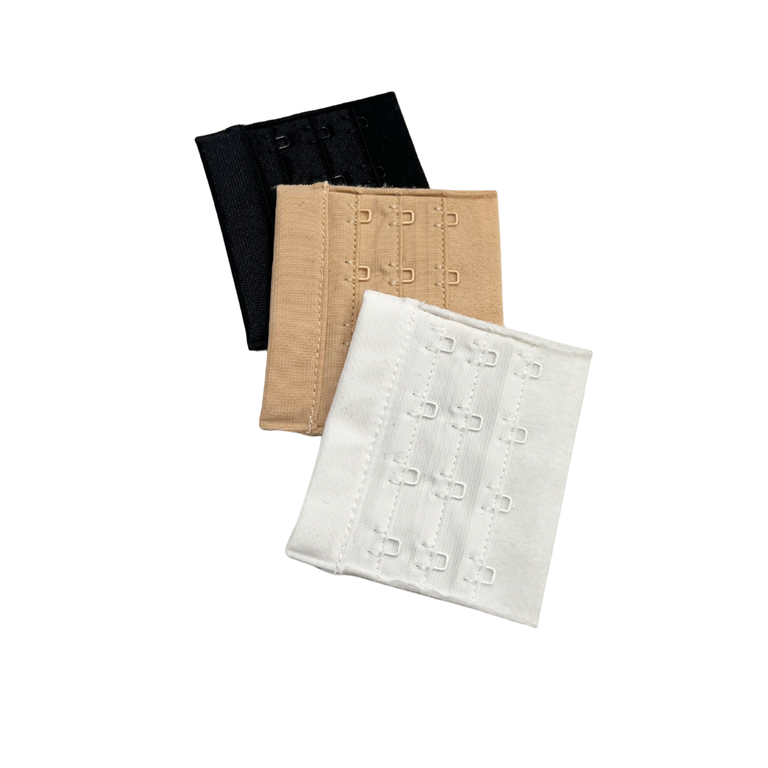 3kpl paketti sisältää valkoisen, beigen ja mustan takajatkopalan.