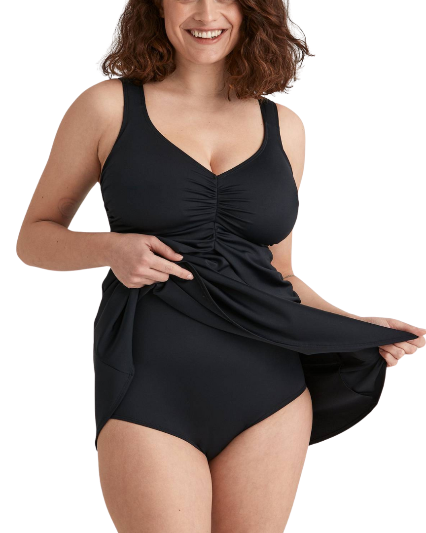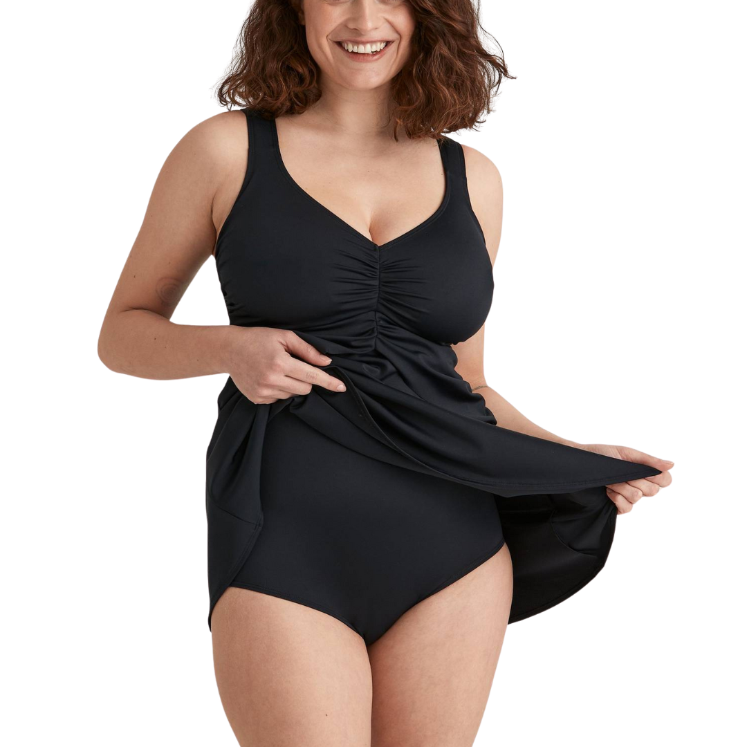- Väljä mekko-osa uimapuvun peittona.