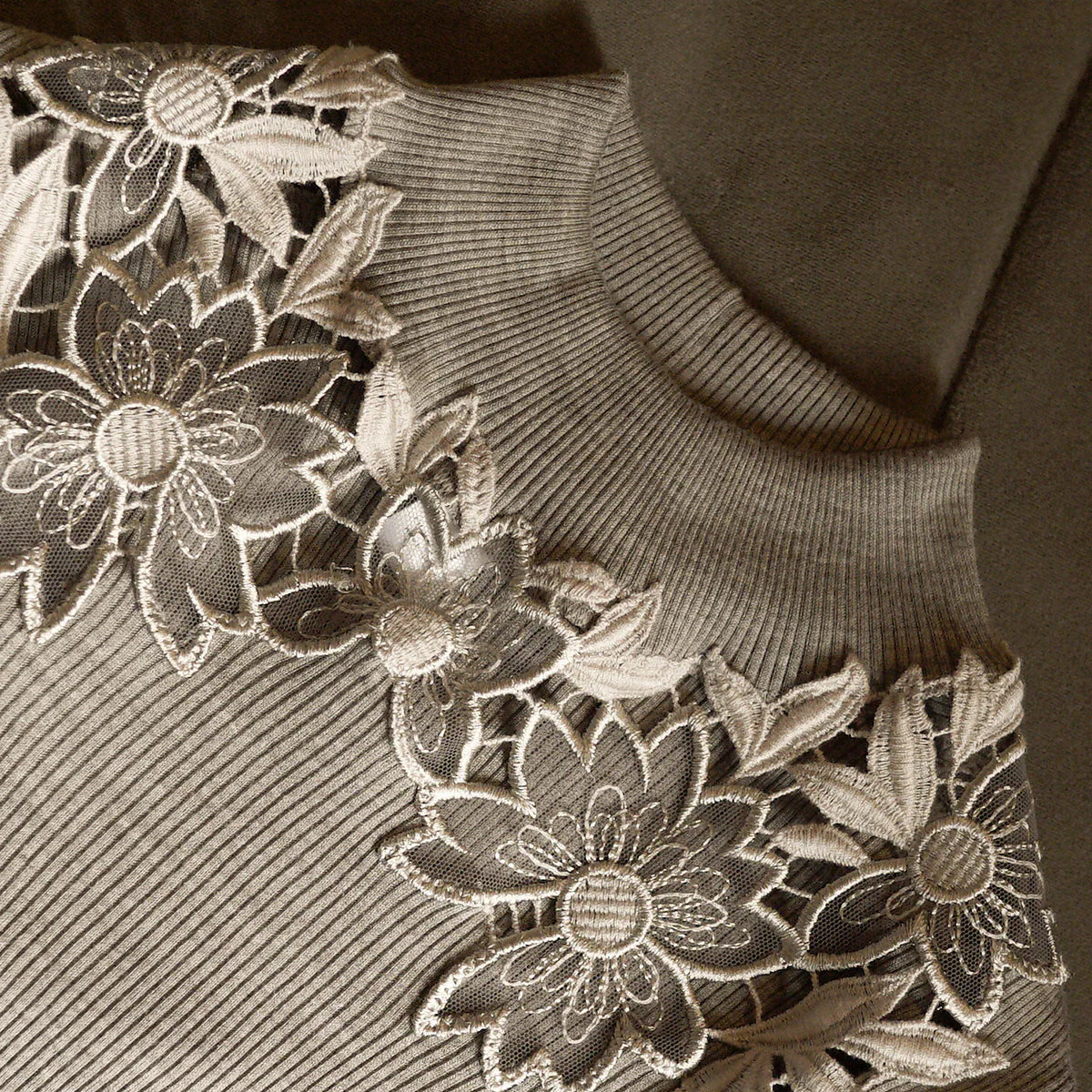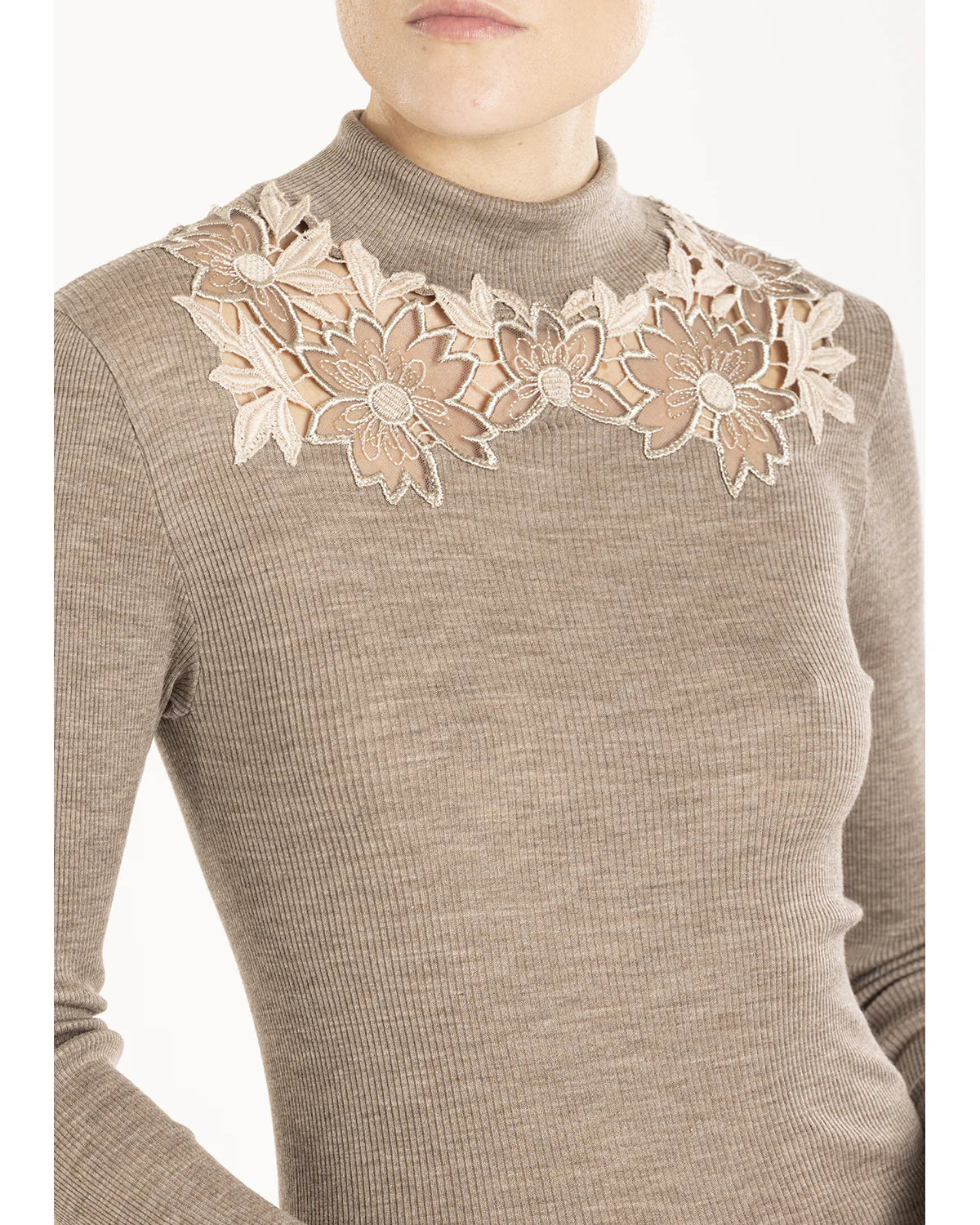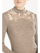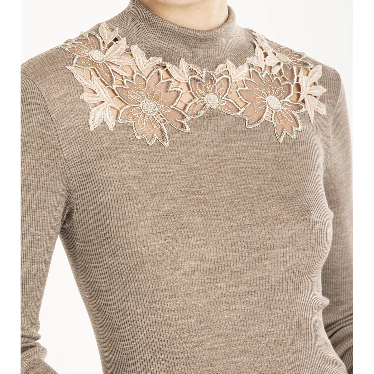 Bogliettin pooloneule hienosta villasta ja silkistä: täydellinen yhdistelmä mukavuutta ja lämpöä. Pitkähihainen poolopaitamalli, jossa elegantti kirjailtu tylli-pääntie. Saumaton vartalo-osa. Vertaansa vailla olevaa mukavuutta, pehmeyttä ja eleganssia.