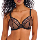 Freya Loveland rintaliivi. Kaarituellinen toppaamaton rintaliivi keskittävällä kuppimallilla. Kaunis läpikuultava kevyt materiali, mutta silti tukeva. Koristeena helmenvaaleaa kirjailua. Kokonaan säädettävät olkaimet. Koossa J80 on takana 3 hakasta ja muissa on 2 hakasta.