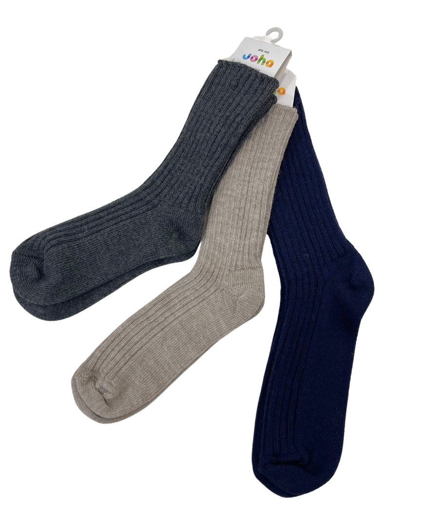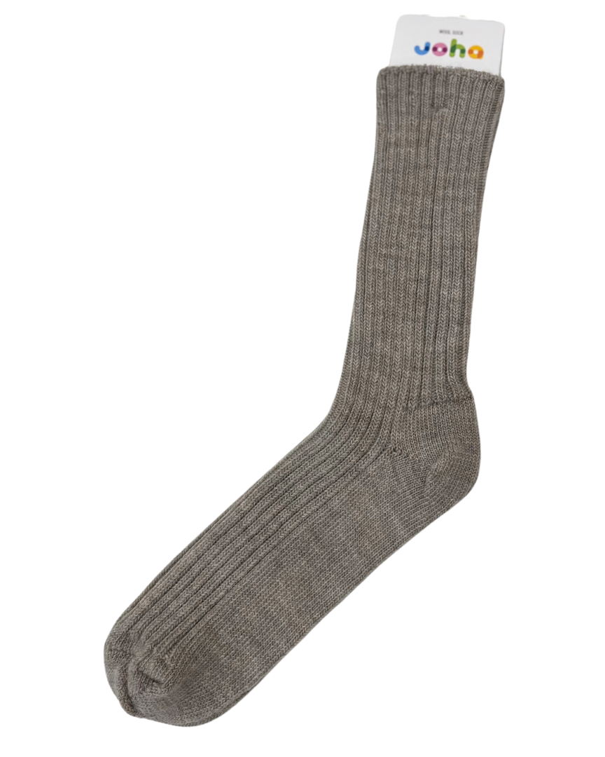 Joha kiristämätön ribbineuloksinen villasukka. Miellyttävän pehmeä ja lämmittävä, mutta silti paksuudeltaan ohuehko sukka käytettäväksi myös vaikka ulkokenkään.