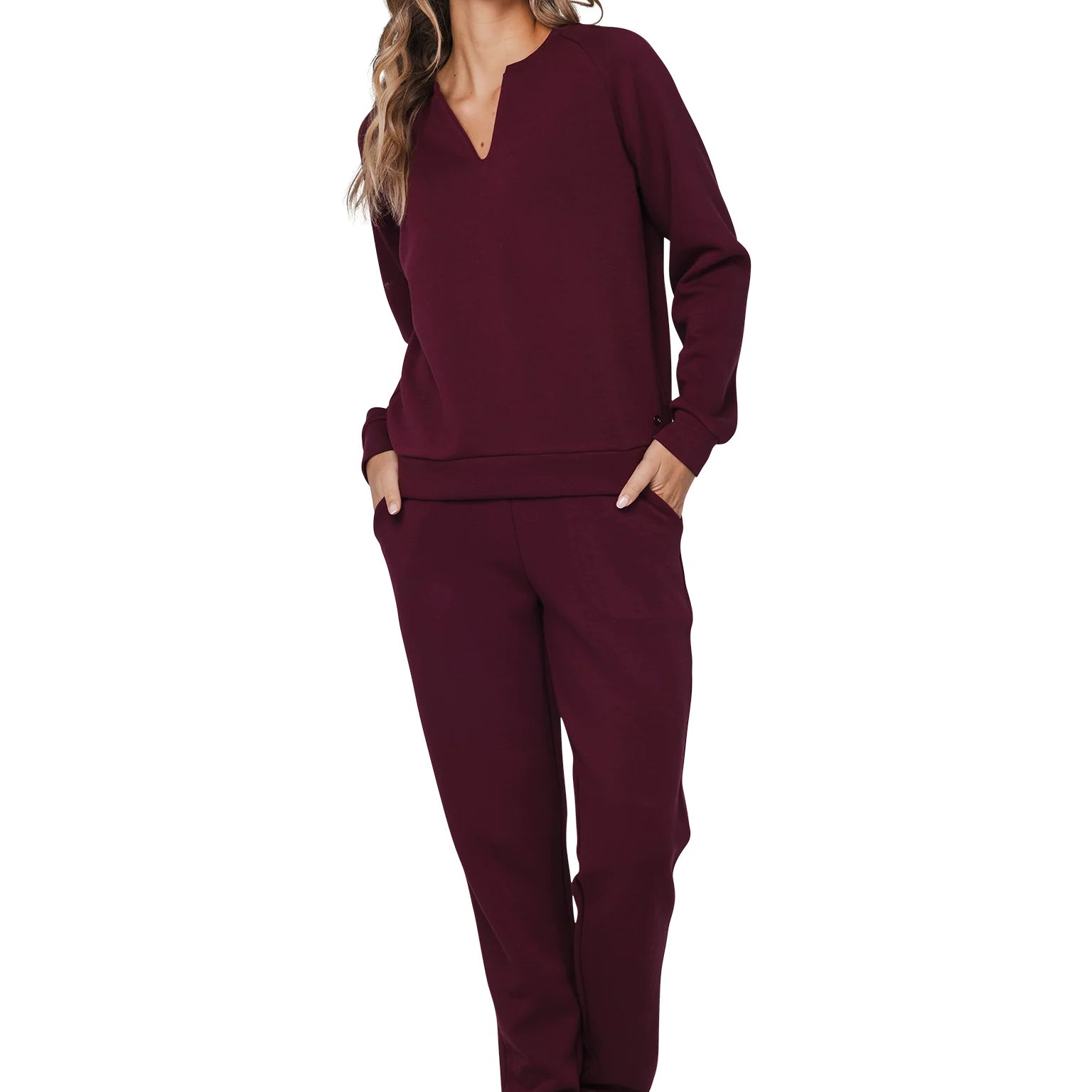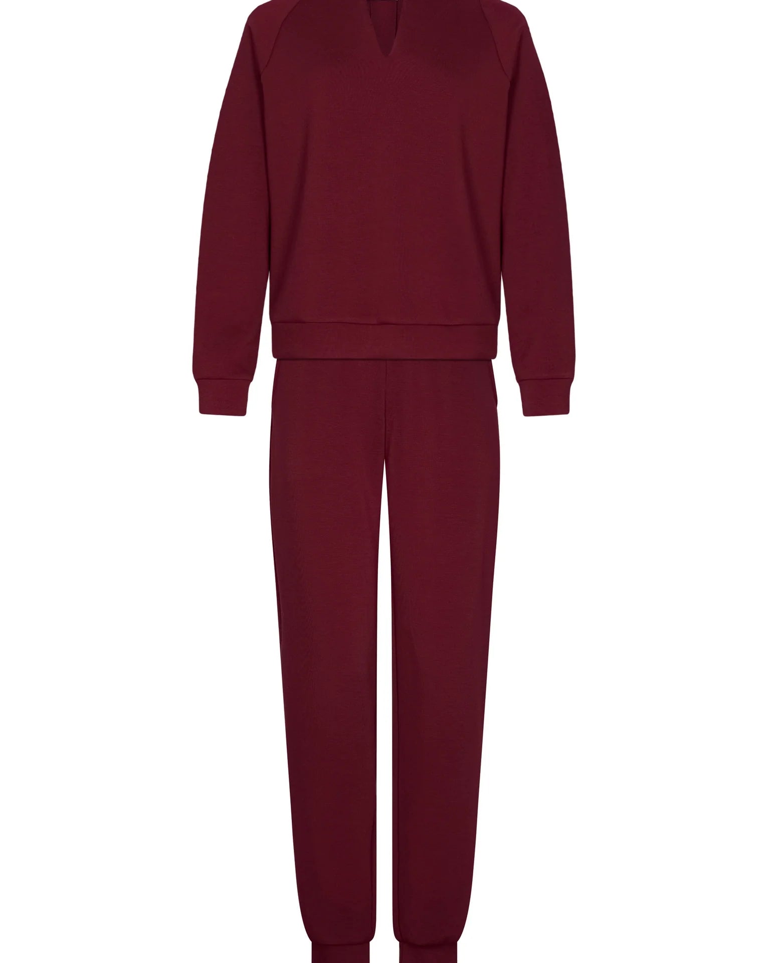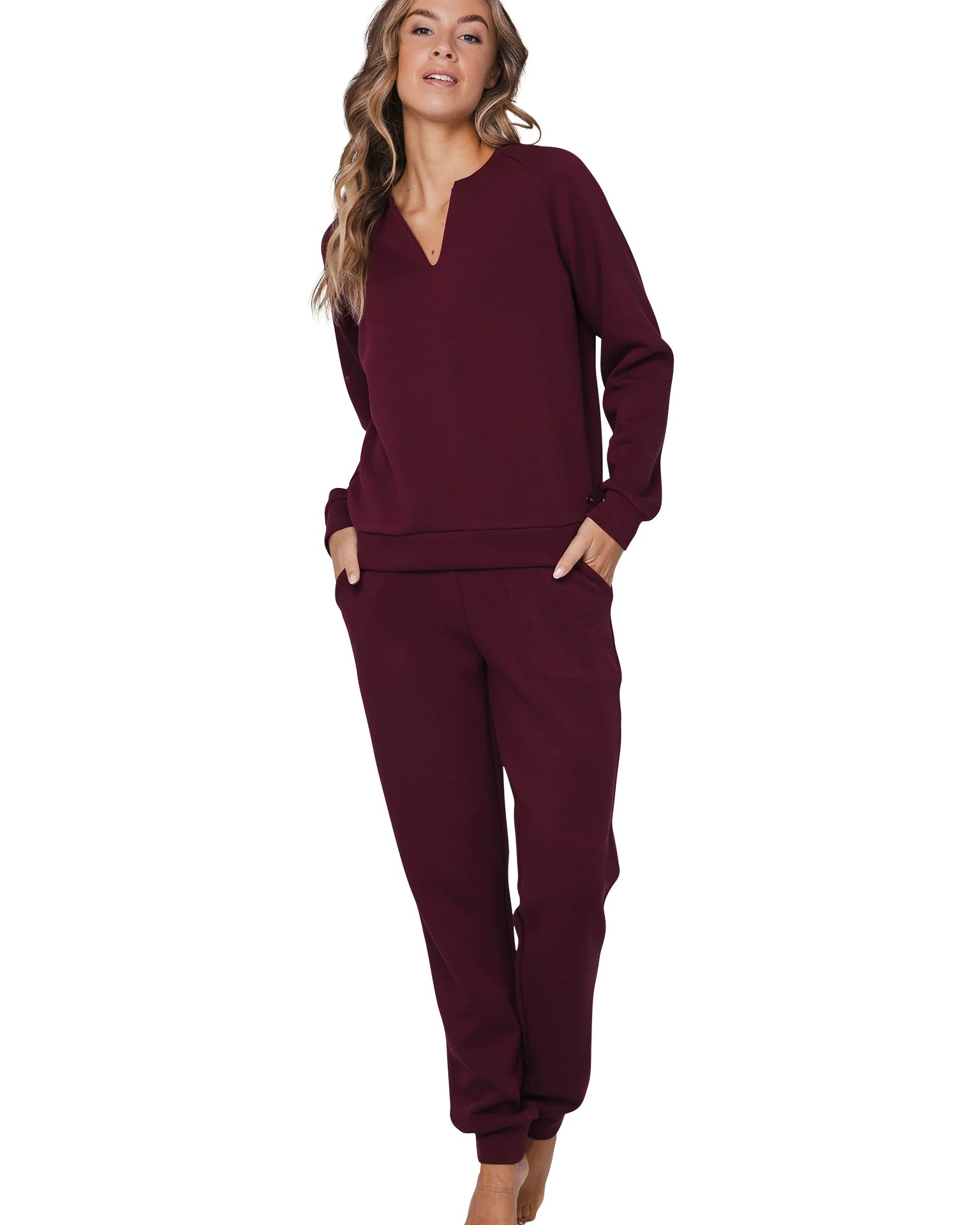 Pastunette Premium lounge-oloasu. Pitkähihainen pusero jossa halkio pääntiessä. Pitkissä housuissa on käytännölliset sivutaskut, joustava vyötärönauha ja lahkeensuut mukavan istuvuuden takaamiseksi. Tämä on helppohoitoinen oloasu joka ei juuri rypisty.