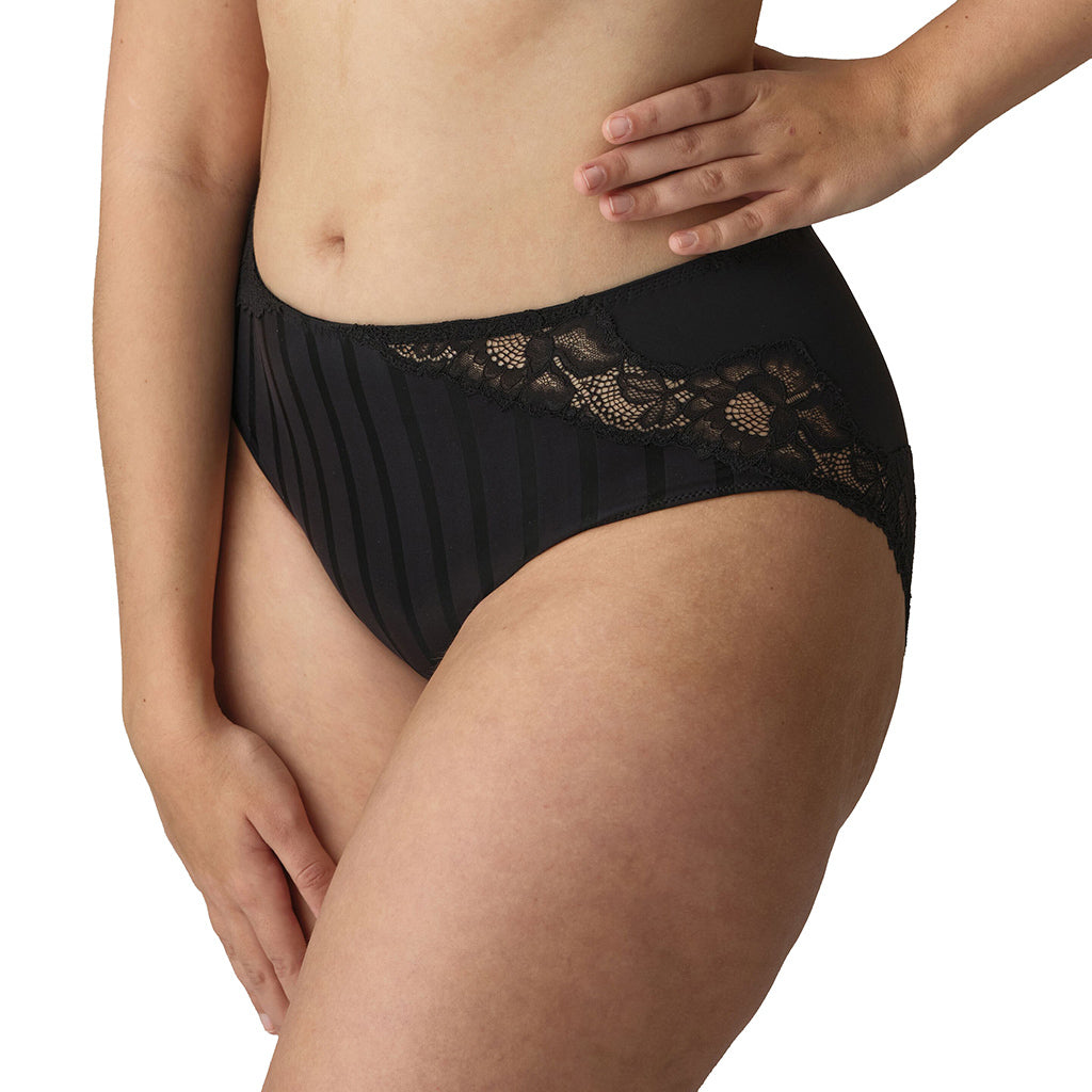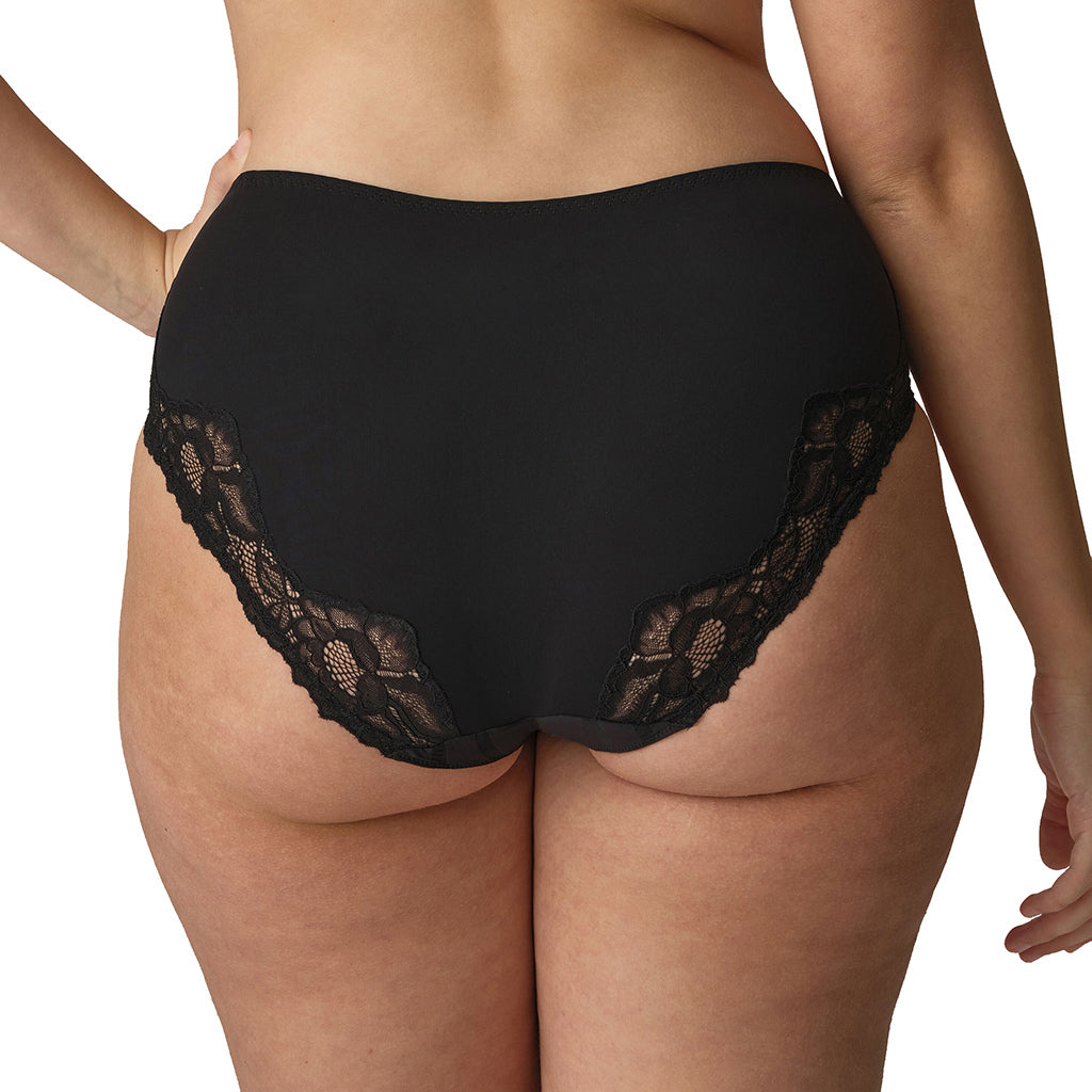 PrimaDonna Twist Maldives korkea housu. Tämä alushousu tarjoaa täydellistä mukavuutta. Mustan värin ja vintage-pitsien yhdistelmä on kaunis ja klassinen.