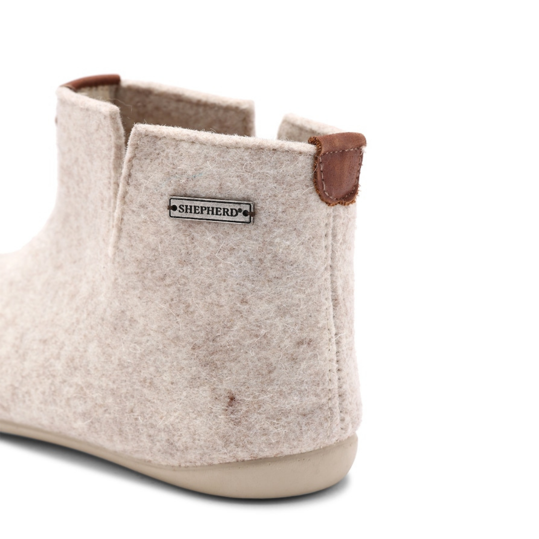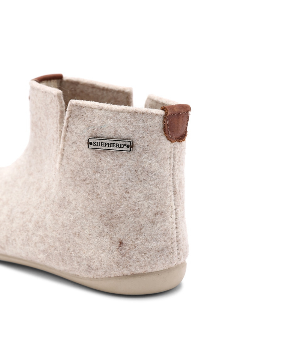 Shepherd Ester on naisten nilkkakorkuinen villatossu, joka sopii täydellisesti sisäkengäksi arjen askareisiin. Tossuissa on sivuilla halkiot helpottamassa pukemista ja riisumista, villasta valmistettu pehmeä sisäpohja sekä kestävä kuminen ulkopohja. Nahkaiset yksityiskohdat ja näkyvä sauma edessä luovat ajattoman muotokielen. Mukava ja tyylikäs tossu aktiivisiin hetkiin kotona.