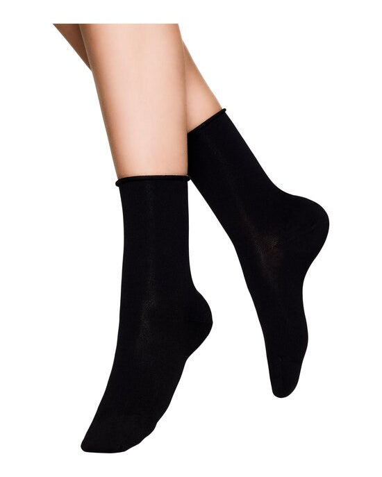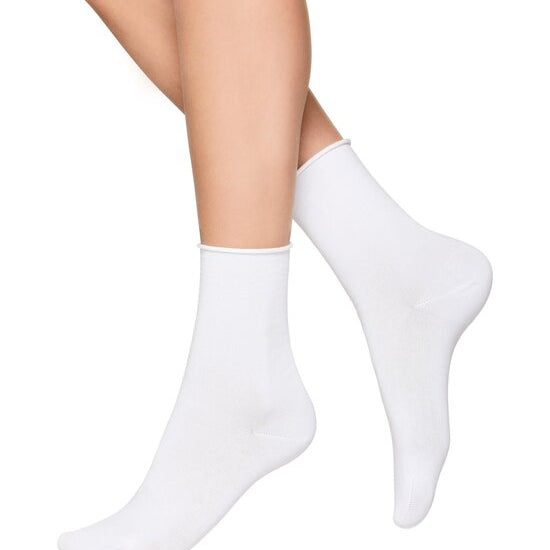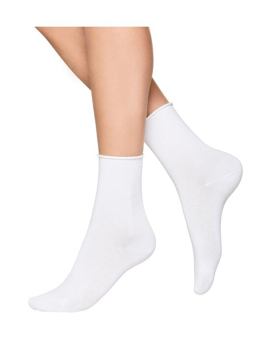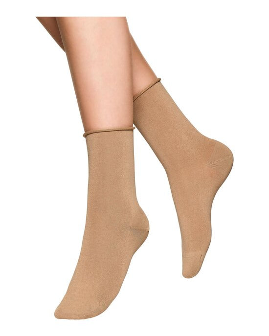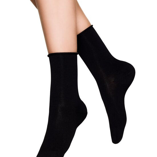 Vogue puuvillasekoite sukka kiristämättömällä yläreunalla. Pehmeä ja silkkinen. Lanka on kehrätty parhaasta egyptiläisestä pitkäkuituisesta puuvillasta, mikä vähentää nukkaantumista. Saumaton kärkiosa.