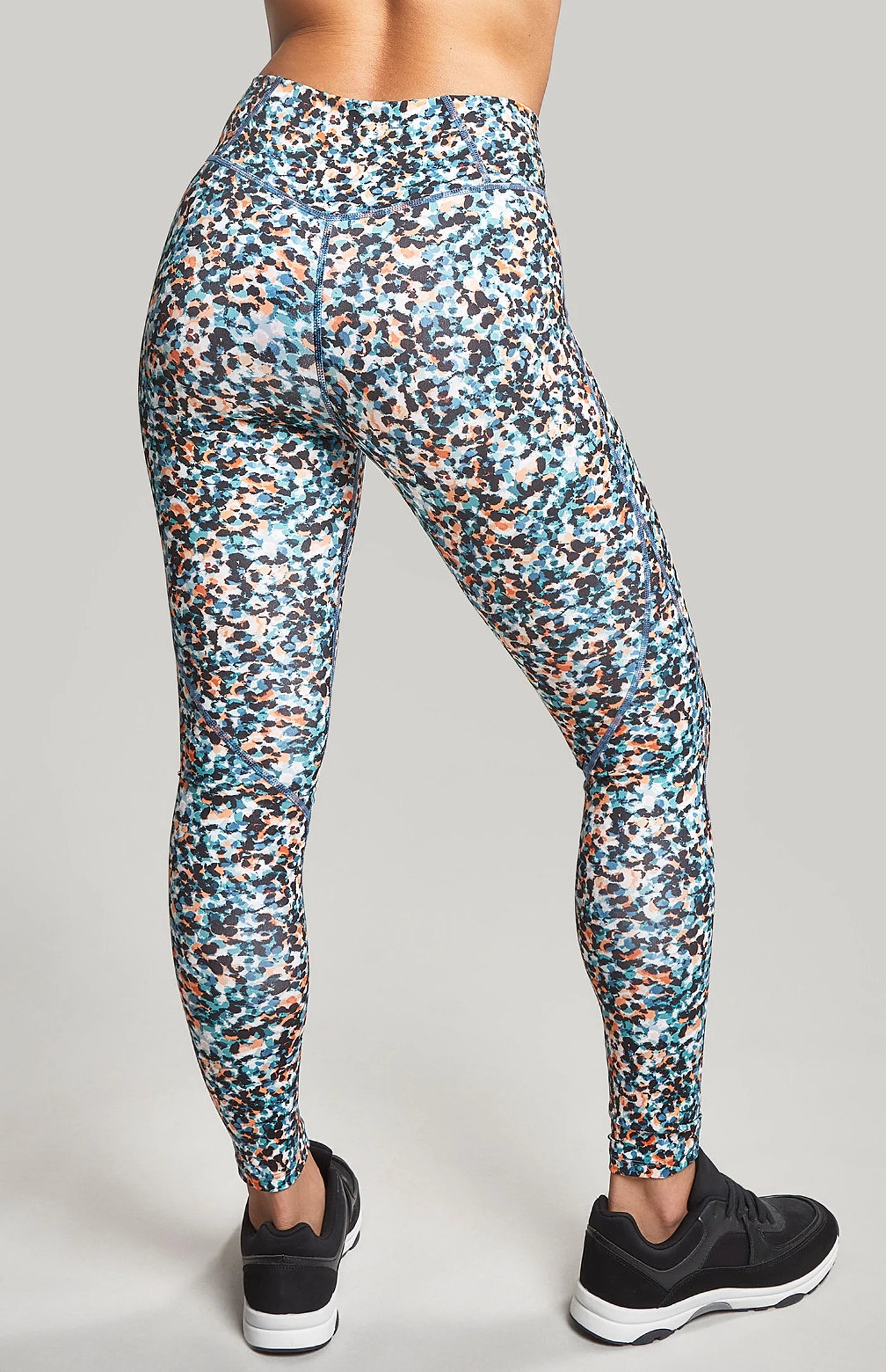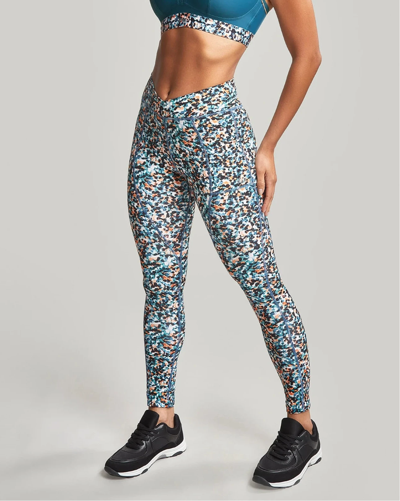 Panache Ultra Adapt Legging 5020 -urheilutrikoot. Korkeavyötäröiset urheiluhousut ihanan napakasta ja tukevasta materiaalista. Housun yläreuna edestä on mutooiltu ja se on kaksinkertainen, hieman vatsaa tukeva ja miellyttävän saumaton. Sivussa huomaamattomat taskut ulkoreidellä. Imartelevat leikkaukset, joiden ansioista housu pysyy hyvin paikoillaan. Housu on mukavan paksua, eikä siitä näy läpi. Petrooli-musta-oranssi-vaalea kuviointi.