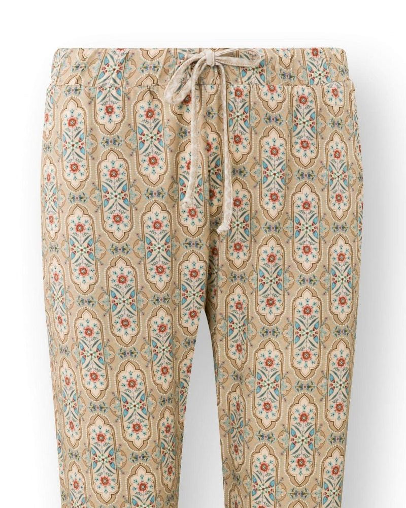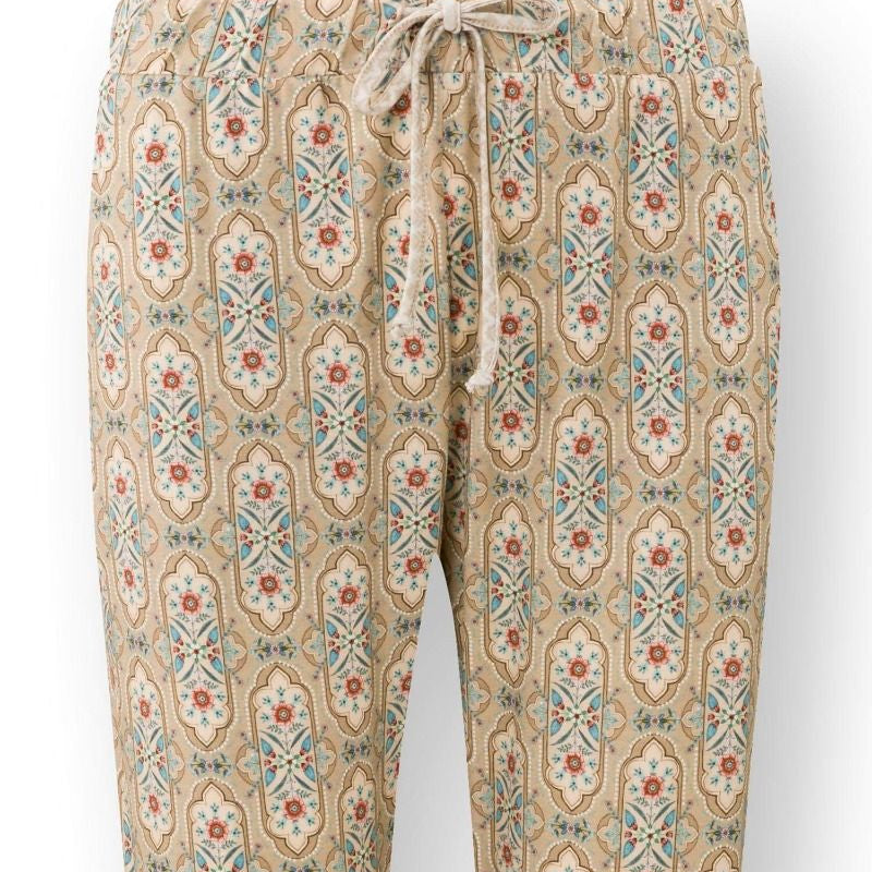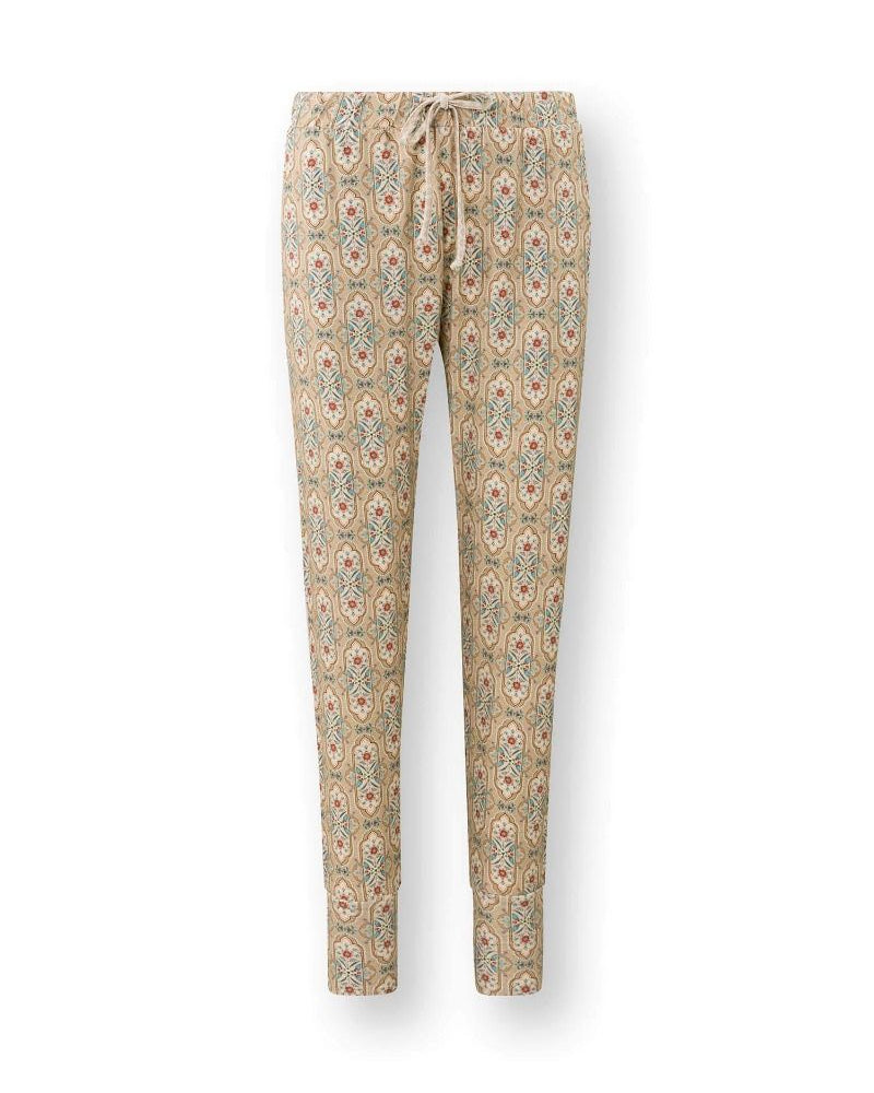 Pip Studio Bobien pitkät housut ovat täydellinen yhdistelmä mukavuutta ja tyyliä. Nämä housut on valmistettu ihanan pehmeästä viskoosi-elastaanisekoitteesta. Joustava vyötärönauha ja kiristysnyöri tarjoavat täydellisen istuvuuden ja äärimmäisen mukavuuden. Jabali-kuosi on erittäin hienostunut. Se koostuu monista pienistä kukista ja lehdistä, jotka yhdessä muodostavat koristeellisen kaarikuvion. Yhdistä vaikka Pip Studion paitaan ja kimonoon.