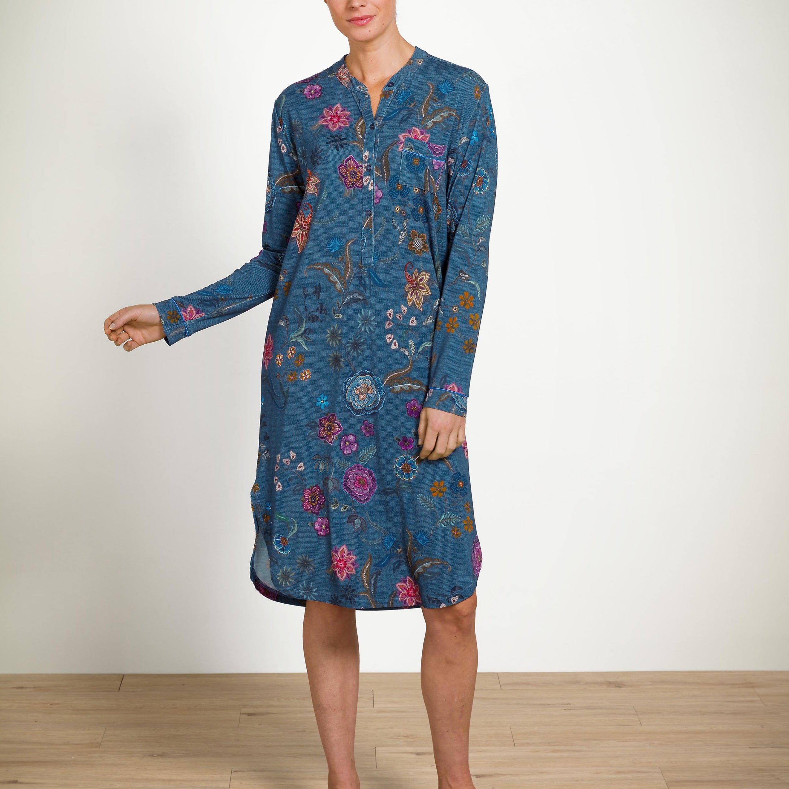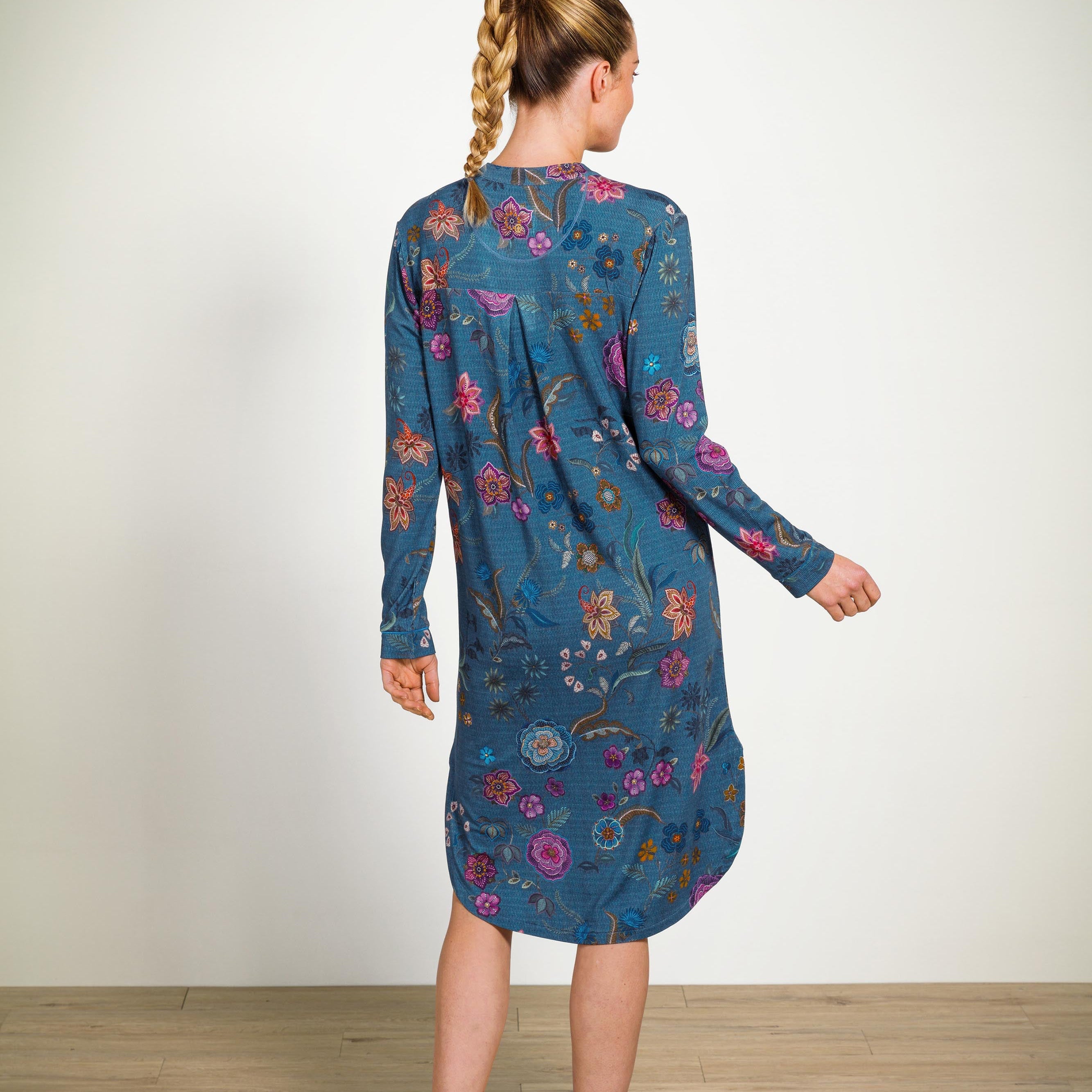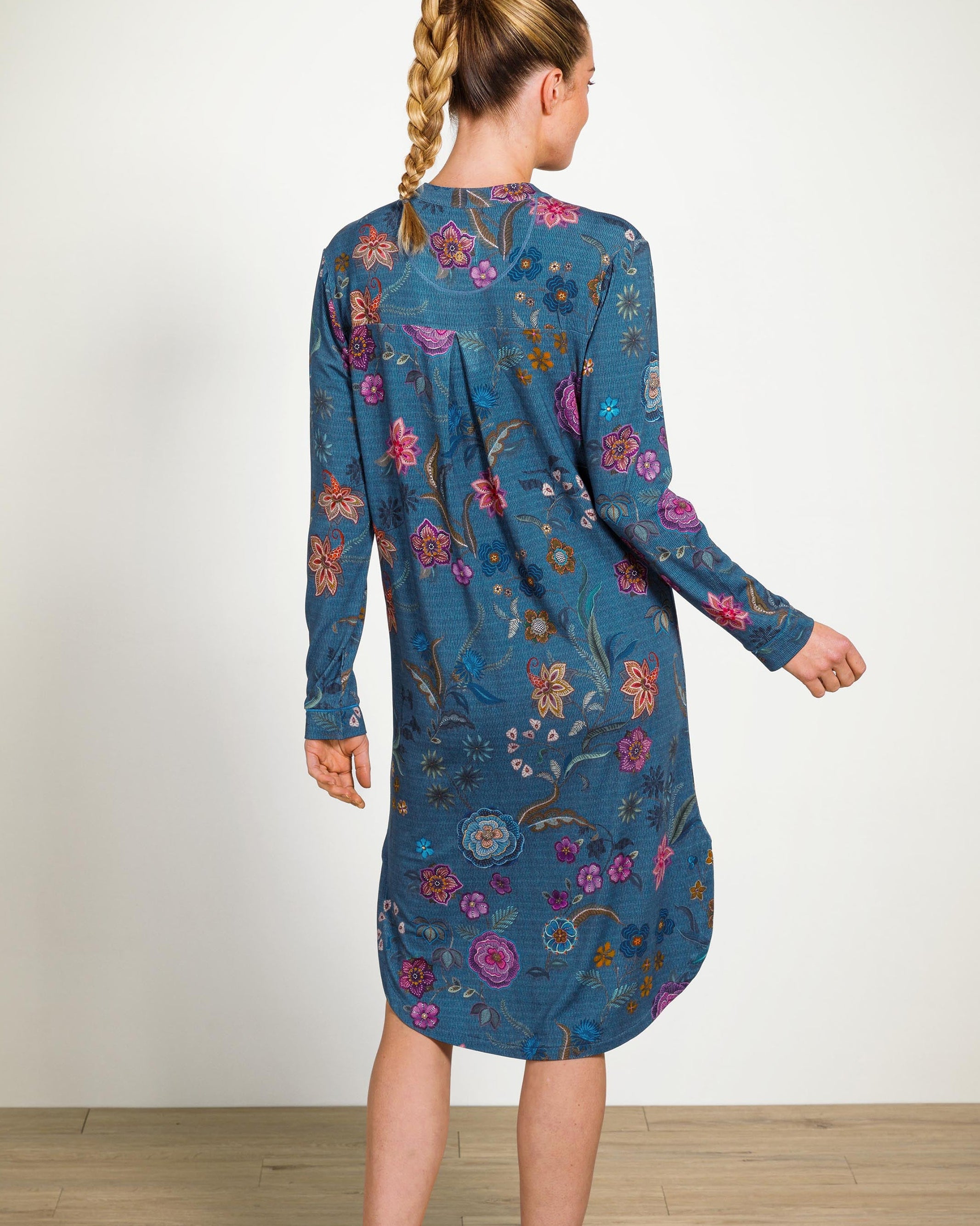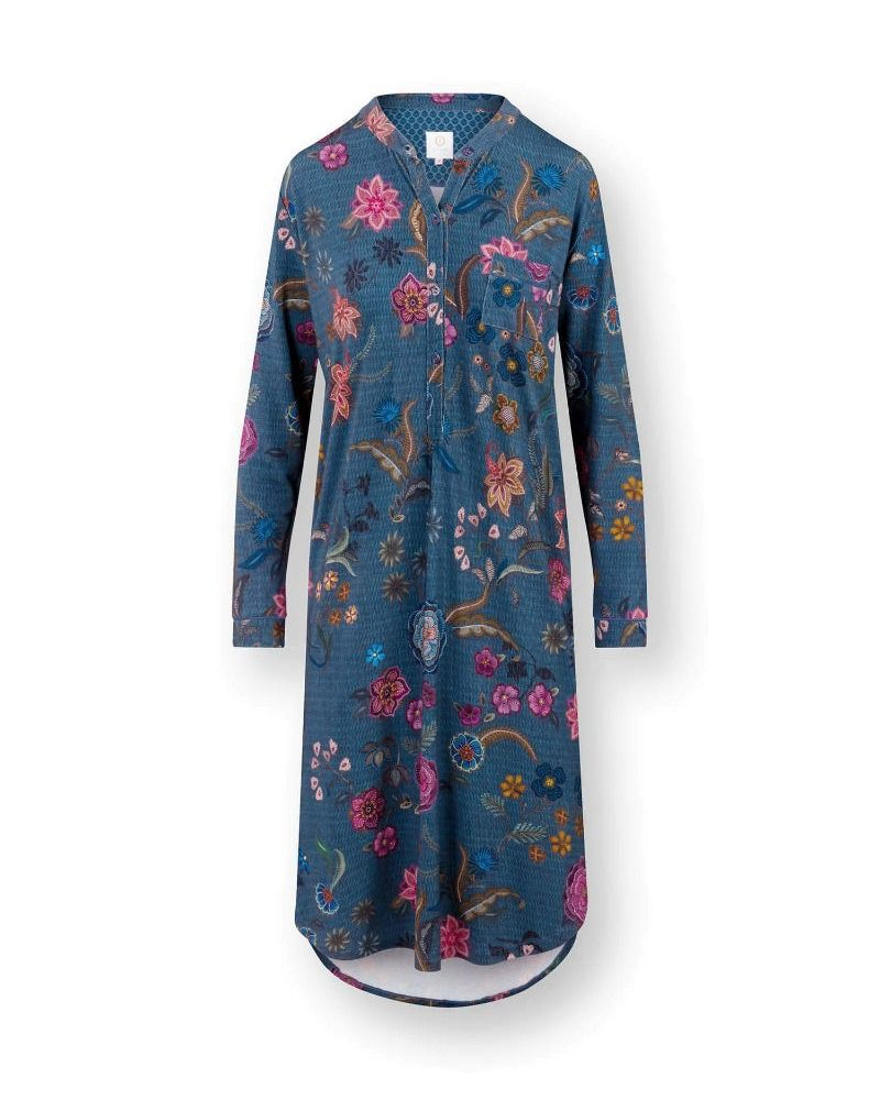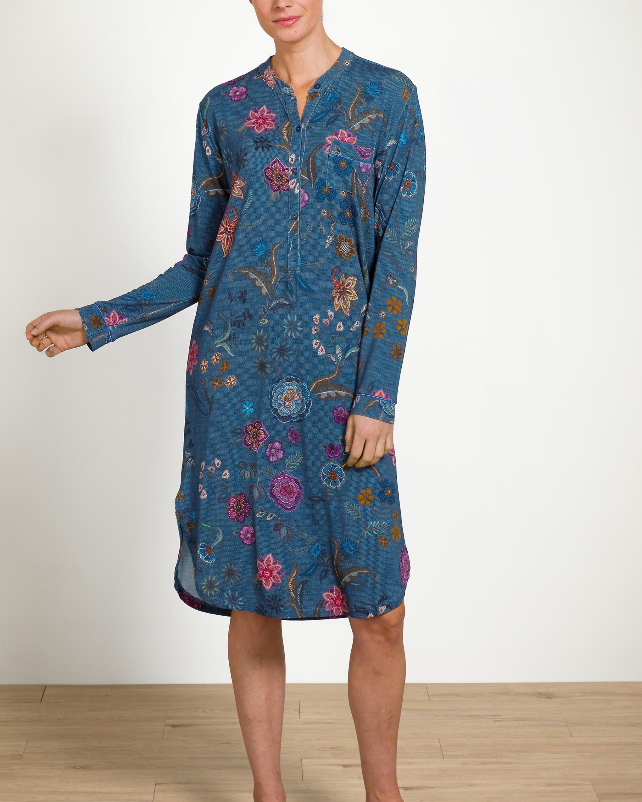 Pip Studion Diogo -pitkähihaisessa yöpaidassa on väljä ja mukava istuvuus. Viskoosi-elastaanisekoite on pehmeää, sileää ja hengittävää. Miehustassa nappilista. Kookoksenkukka-kuosi esittää käsin piirrettyjä fantasiakukkia, jotka on koristeltu pisteillä ja raidoilla.
