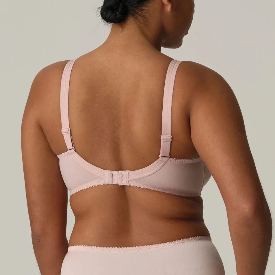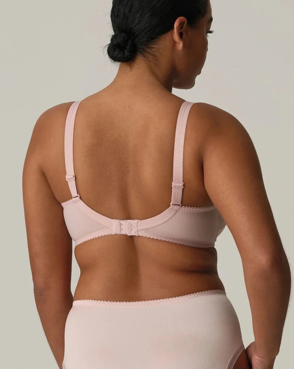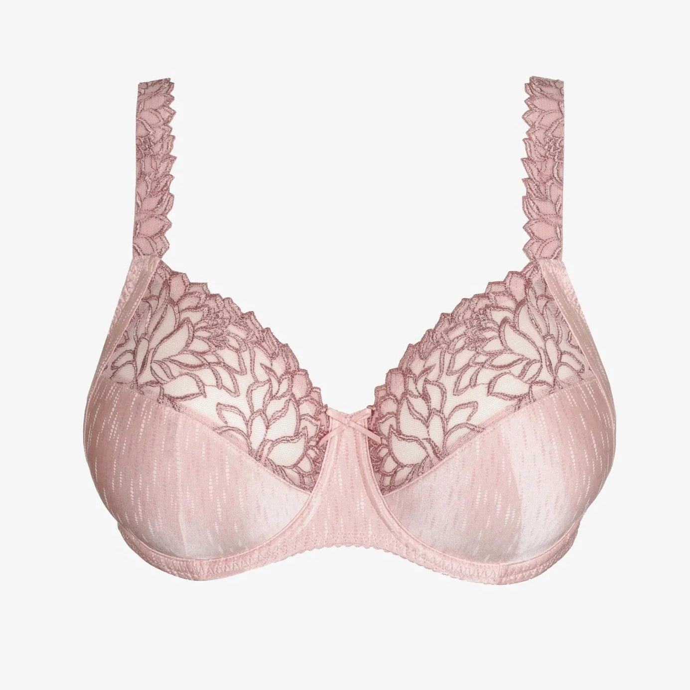 Primadonna Monterrey kaarituellinen rintaliivi ilman toppausta. Kokokuppinen kuppimalli, jossa sisäpuolella alaosassa puuvillainen vuori. Kuppiosa tukee hyvin ja antaa kauniin, luonnollisen muodon rinnalle. Säädettävät olkaimet. Värinä heleä hieman kiiltävä puuterinen vanharoosa, joka on helppo yhdistää myös vaaleiden vaatteiden alle.