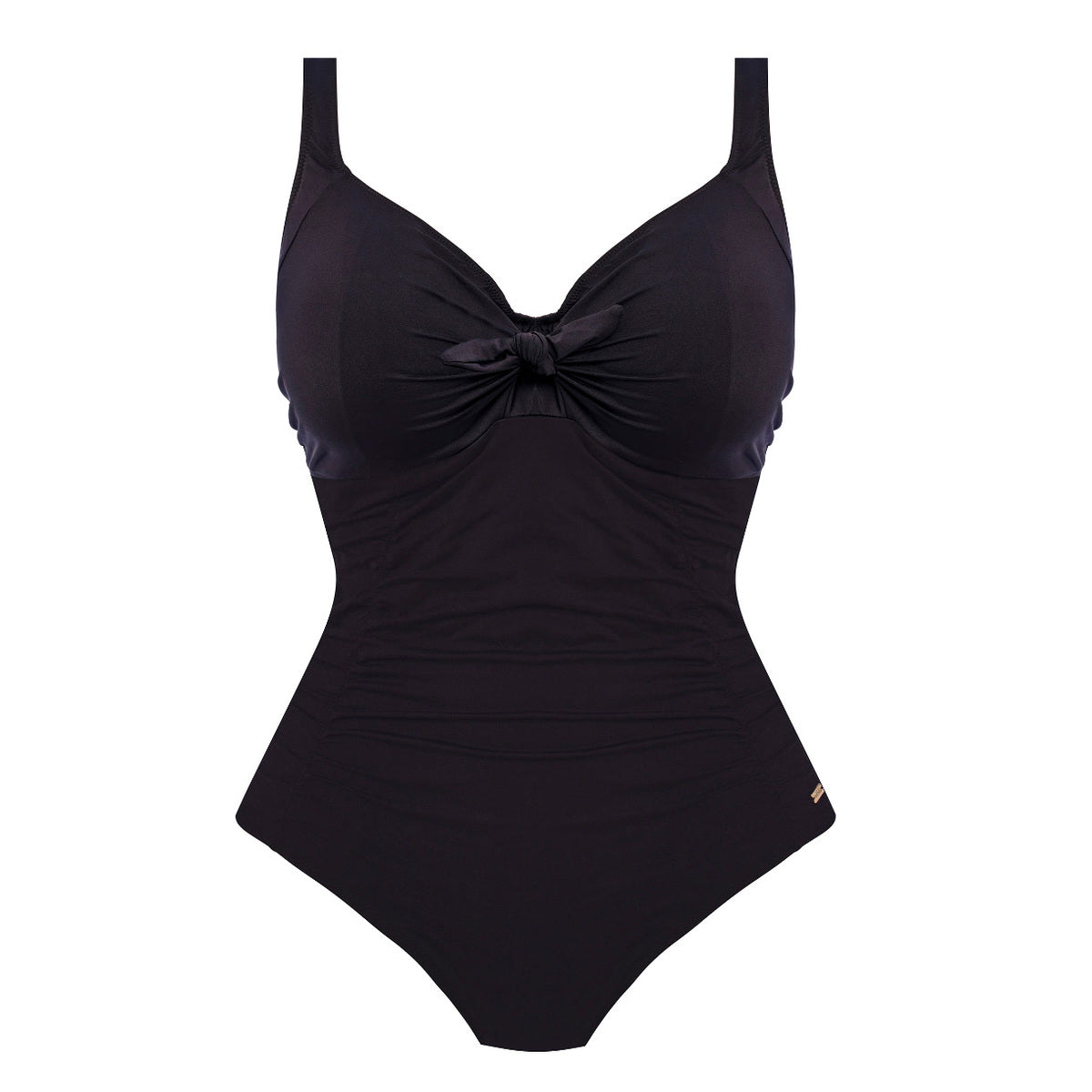 Fantasie kaarituellinen uimapuku. Tukeva kevyesti topattu kuppiosa. Musta tyylikäs uimapuku, jonka tukeva materiaali ja muotoilu tukee vartaloa. Kevyesti rypytetty etuosa. Vuorattu uimapuku ja yläosa on vuorattu tukevasti, hyvän kuppiosan istuvuuden vuoksi. Säädettävät tukevat olkaimet. Rusettikoriste rintojen välissä.
