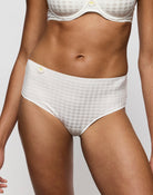 Marie Jo Averon kaunis ruutukuosinen korkea alushousu, toisella puolella kaunis kelta-valkien kukkasomiste.