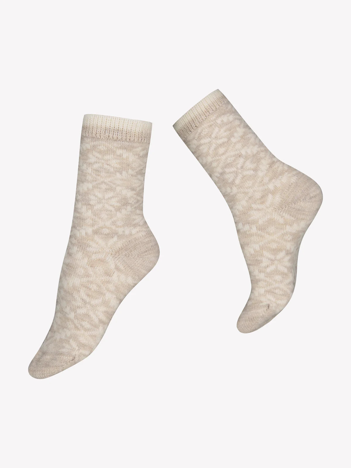 Vogue Edda Wool Sock villasekoitteiset, kuviolliset beige-vaaleat nilkasukat. Pehmeä joustava yläreuna.