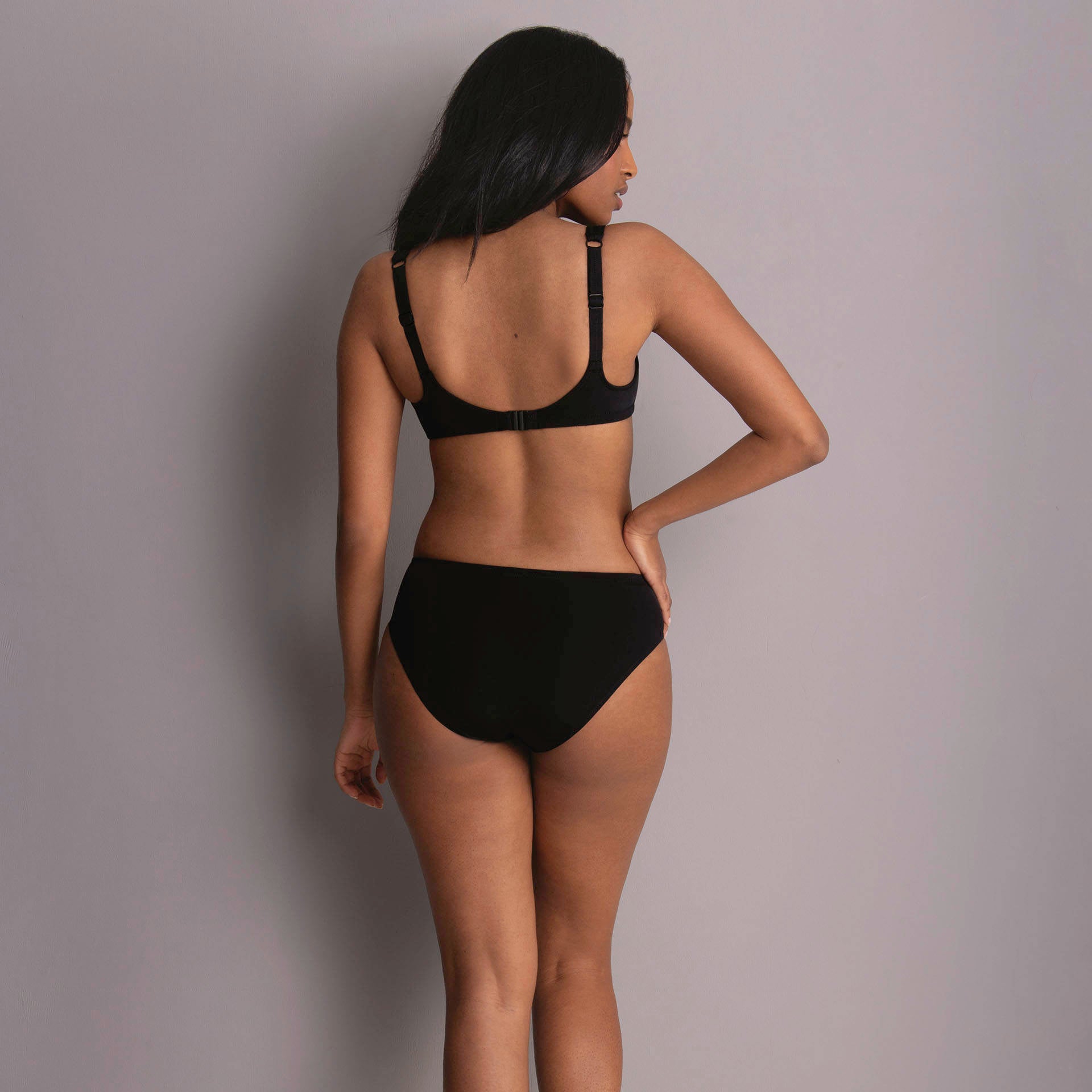 Anita Elle kaaritueton bikini ja korkea housu mustana. Kevyesti topattu kuppi ja säädettävät olkaimet. Miellyttävän pehmeää materiaali ja vuorattu jämäkällä mesh kankaalla, jolloin bikini pysyy tukevana käytössä. Kupissa tyylikästä rypytystä ja kaunis leikkaus. Housussa vatsaosa on vuorattu ja antaa kevyttä tukea, rypytykset vatsan kohdalla.