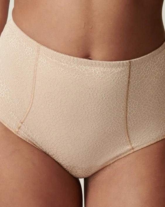 Chantelle C Magnifique vatsaa tukeva korkea housu. Housun keskiosa on tuettu jämäkällä materiaalilla, joka tukee vatsaa. Takaosa on miellyttävän silkkisen pehmeää ja housuosan saumat on ohuet. Kankaassa kevyesti kuvioitu pinta. Puuvillainen haarakiila.