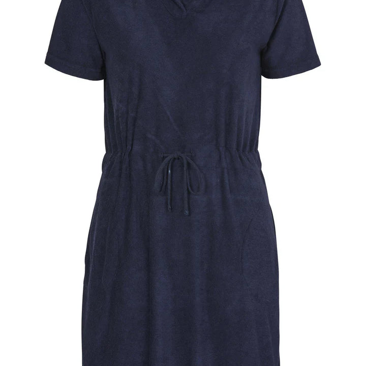 Ihana Damellan olomekko rannalle tai kotoiluun! Mekon materiaali on hengittävää ja pehmeää ekologista Bamboo-froteeta. Vyötäröllä kiristysnauhat.