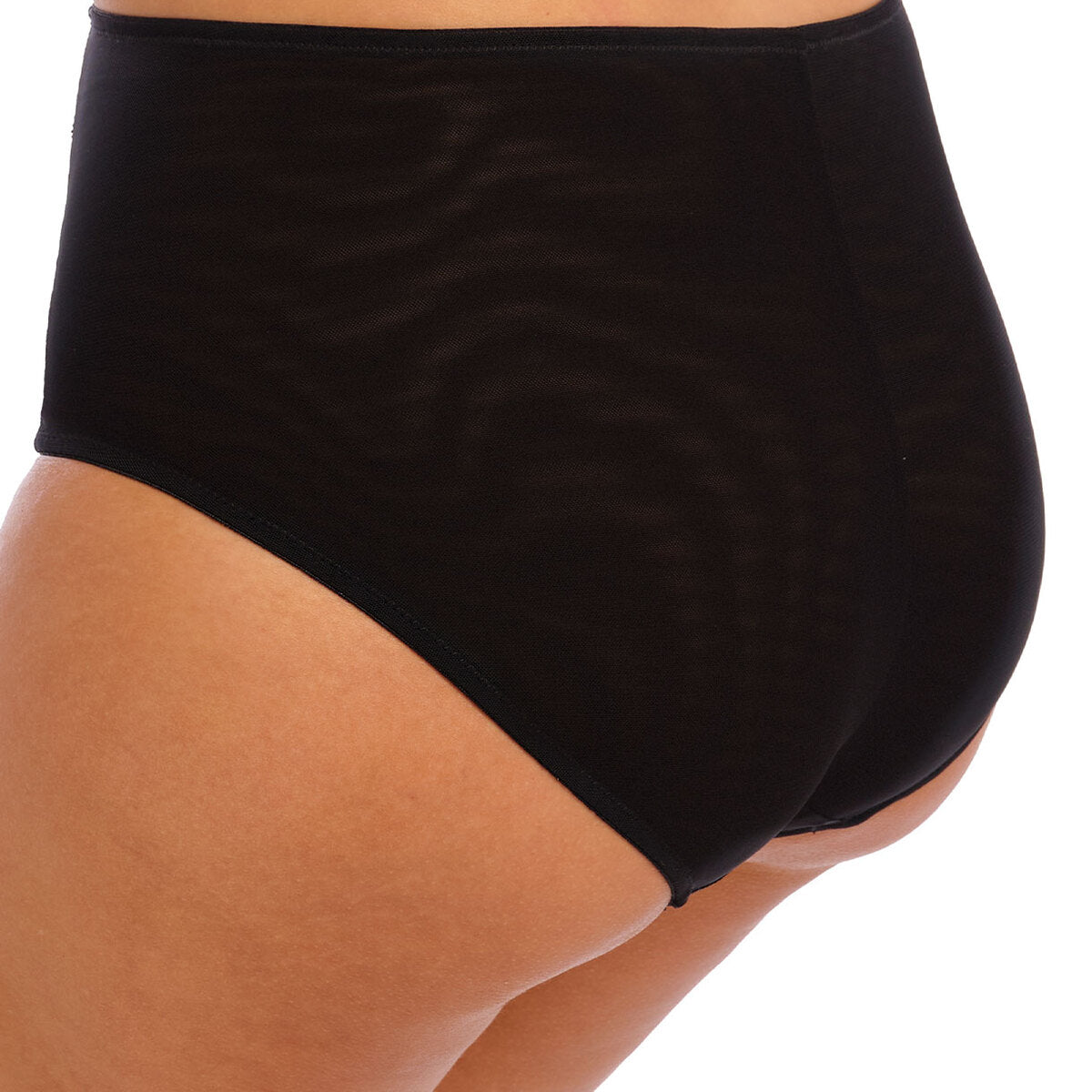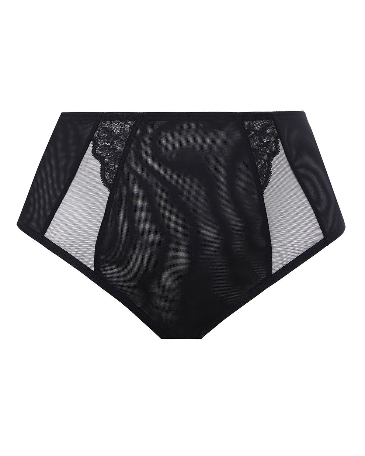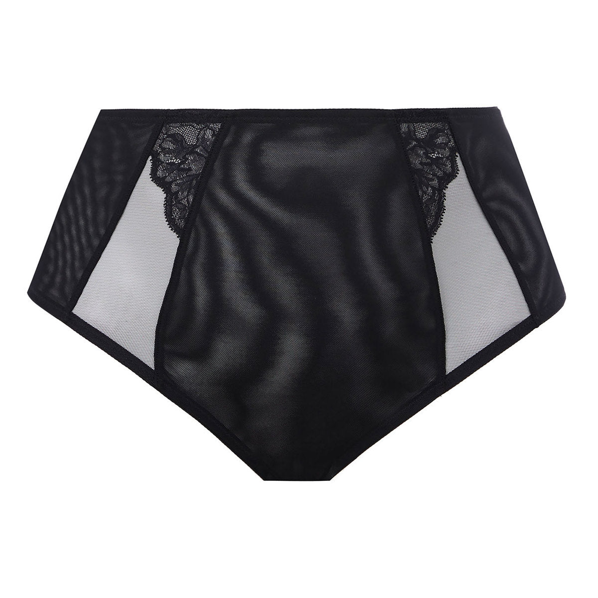 Elomi Brianna sarjan korkea alushouus. Housu on kaksinkertaista joustavaa mesh -verkkoa. Verkko on miellyttävän pehmeää mutta silti napakkaa. Ei täysin läpinäkyvä. Etuosassa pitsiyksityiskohdat.