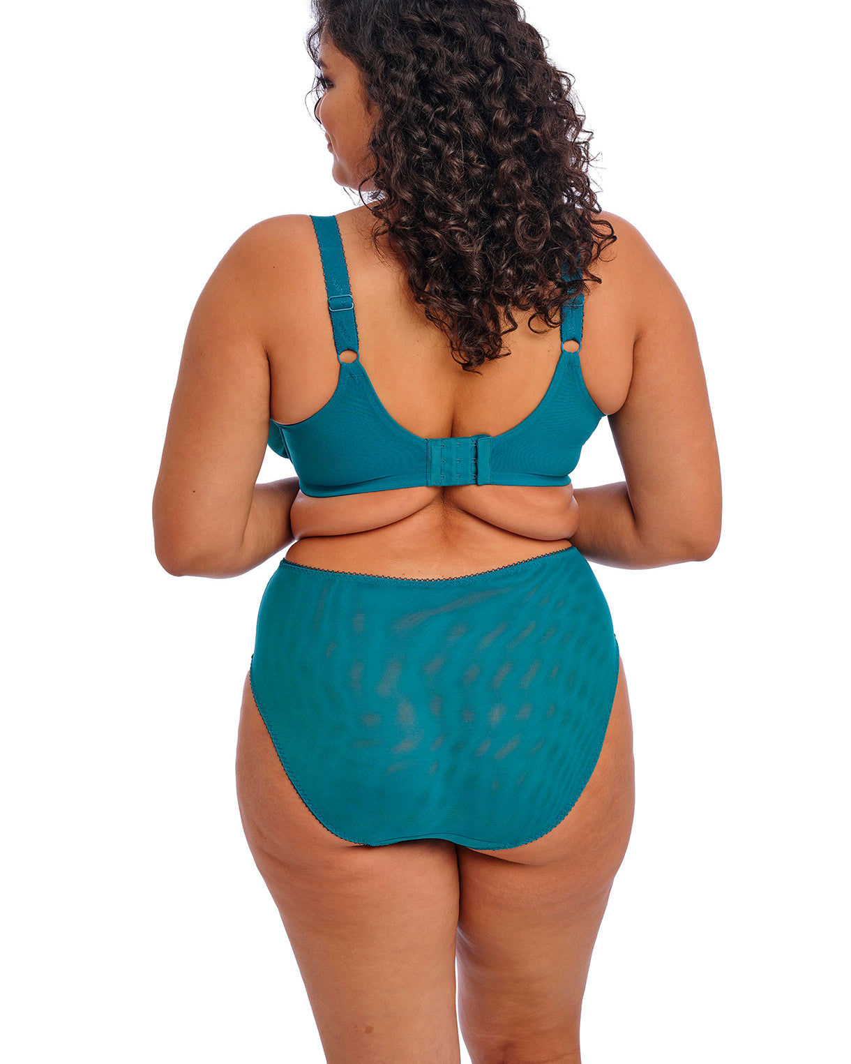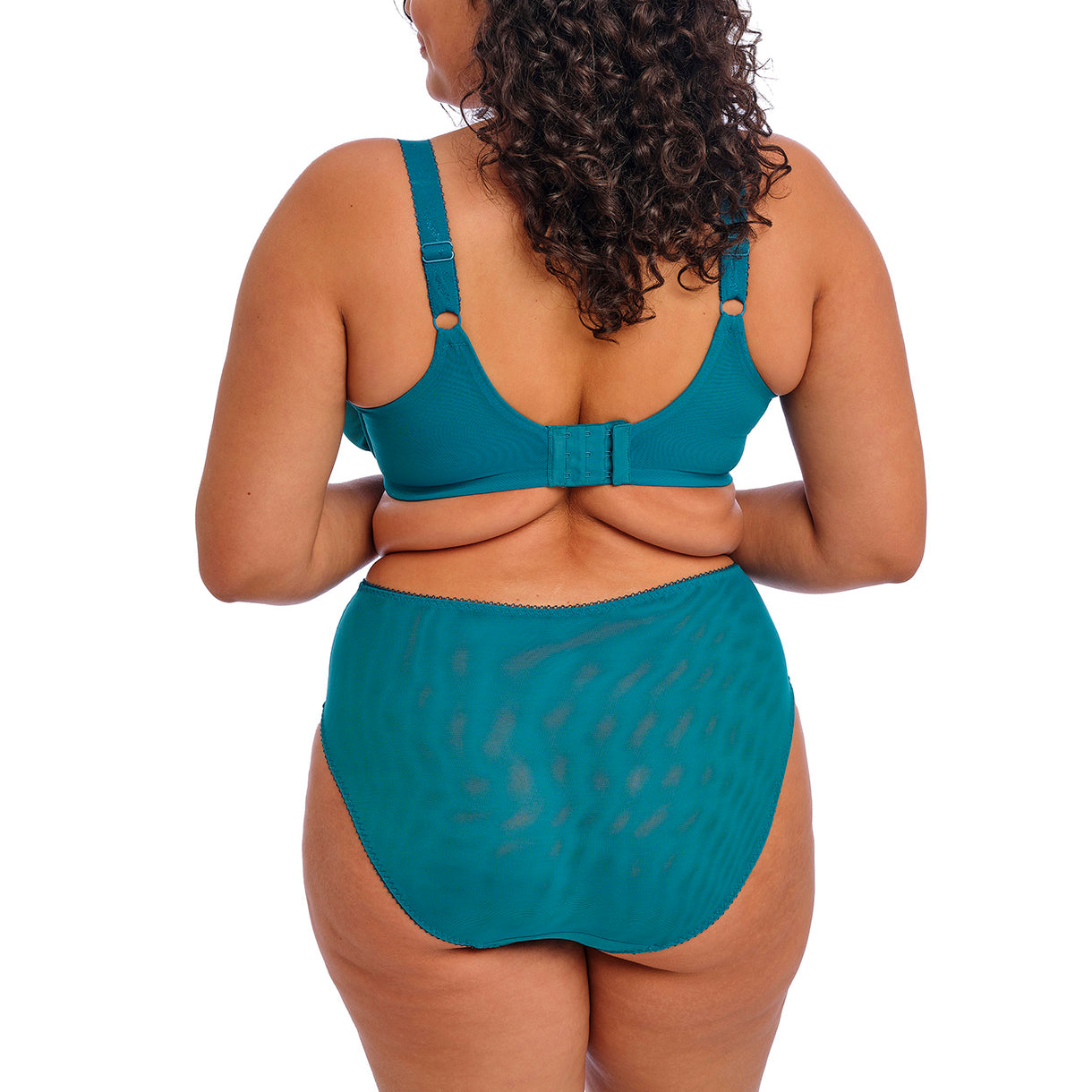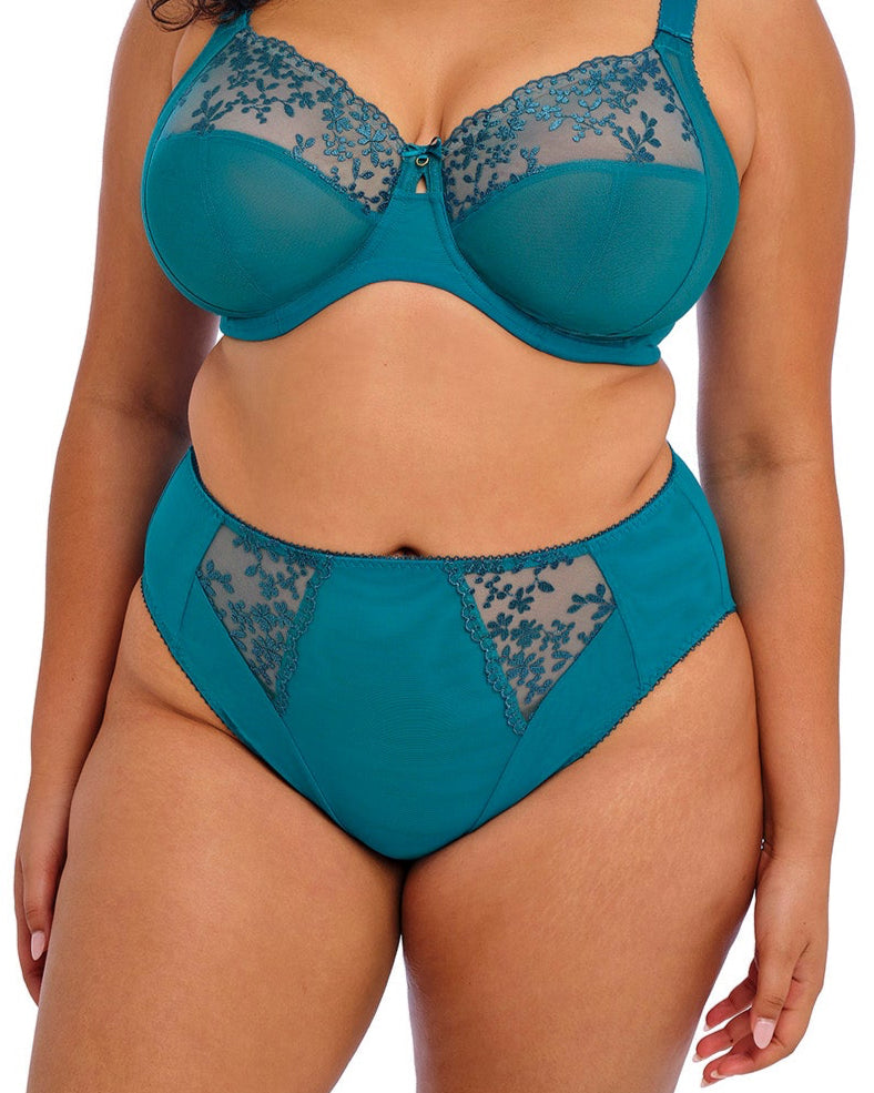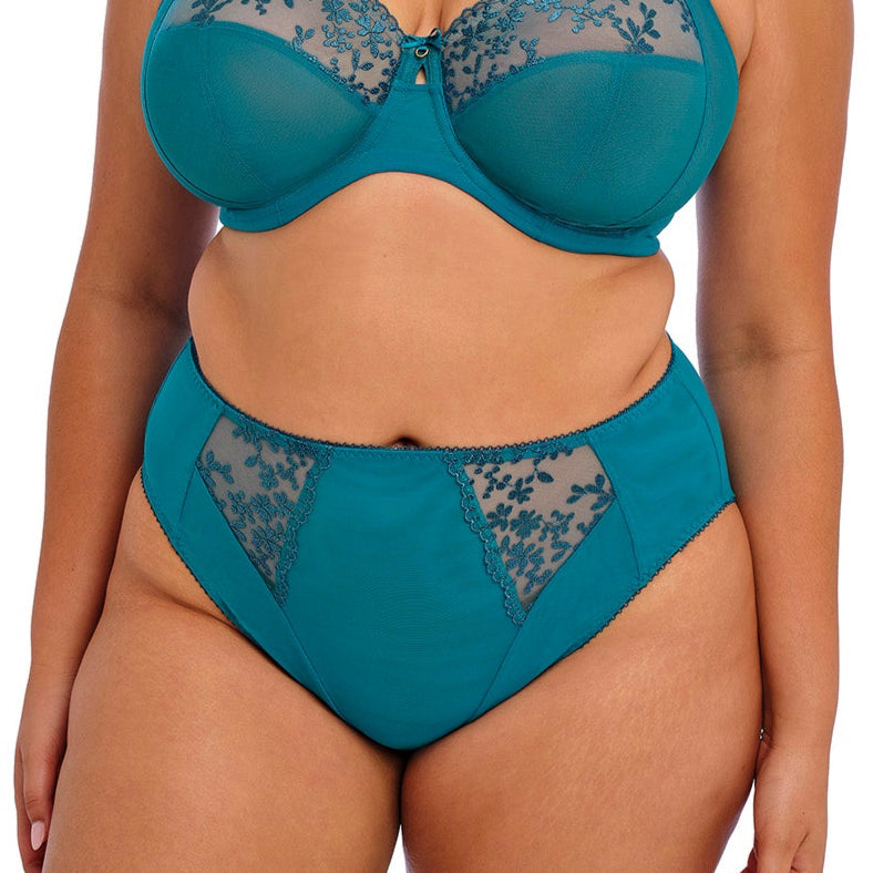 Elomi Zarla korkea alushousu. High leg -mallinen alusousu korkeammalla reisiaukolla. kauniit pitsikoristeet edessä. Materiaalina hengittävää mesh -vekkoa mikä ommeltu kaksinkertaiseksi. Puuvillainen haarakiila.