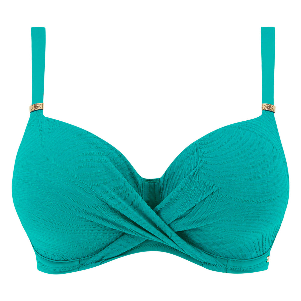 Fantasie Ottawa turkoosinvärinen kaarituellinen bikiniliivi sekä korkea housu vyökortisteella. Kuppimalli on kokokuppinen ja toppaamaton. Struktuuripintainen materiaali on kaunista. Säädettävät olkaimet.