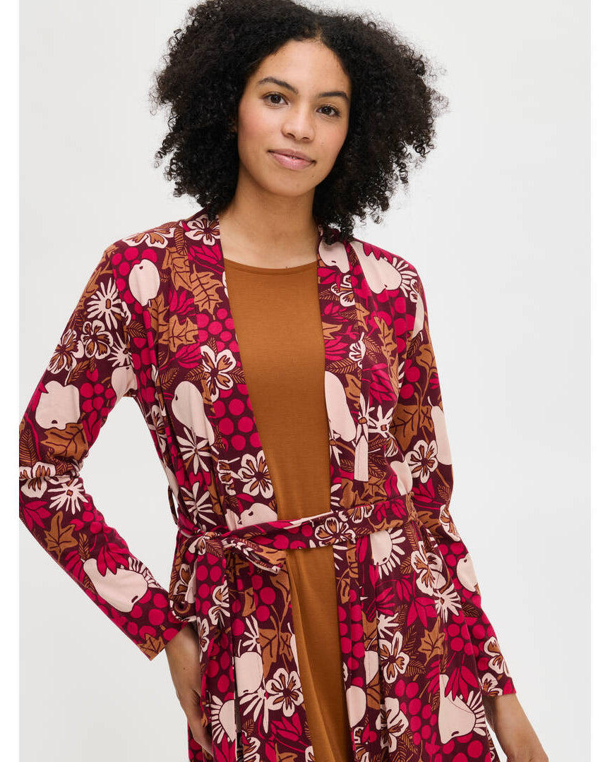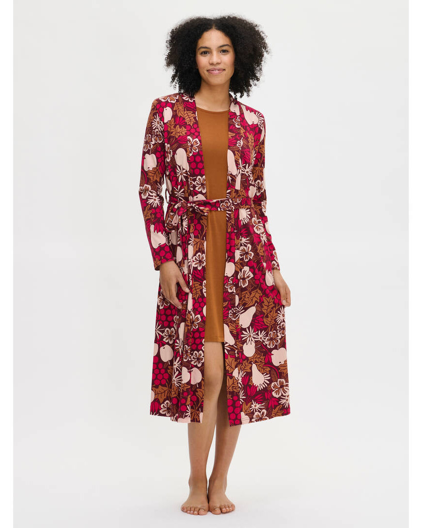 Nanso ihastuttava Juhla -sarjan aamutakki vyöllä ja sivutaskuilla. Aamutakin pituus koossa M on noin 120 cm. Materiaali on laadukasta, iholla miellyttävän pehmeältä tuntuvaa ja helppohoitoista puuvilla-modaalia, joka pysyy hyvänä pesusta toiseen.