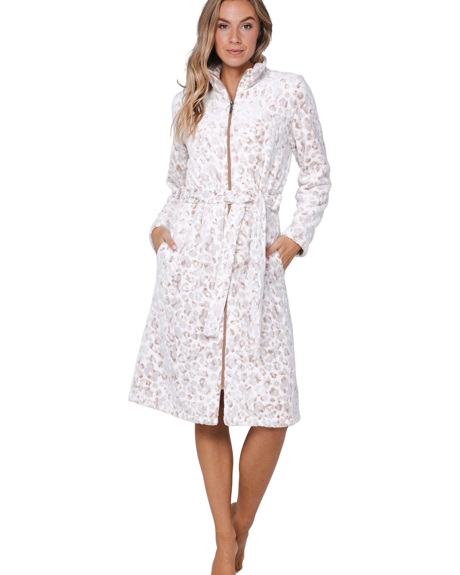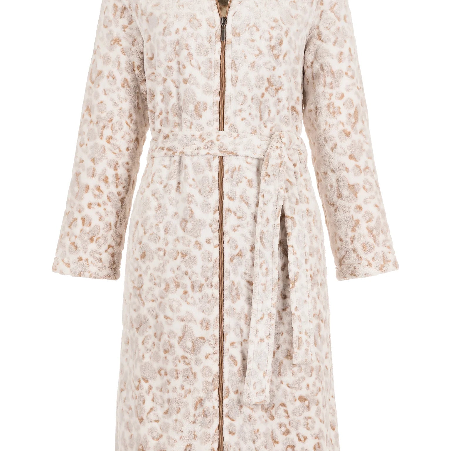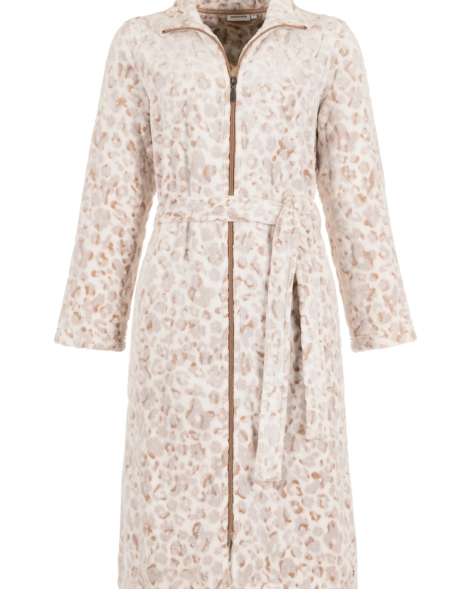 Pastunette fleece-aamutakki. Aamutakissa on pitkät hihat ja vetoketju. Takissa on myös käytännölliset taskut ja vyö elegantin ja mukavan istuvuuden takaamiseksi.