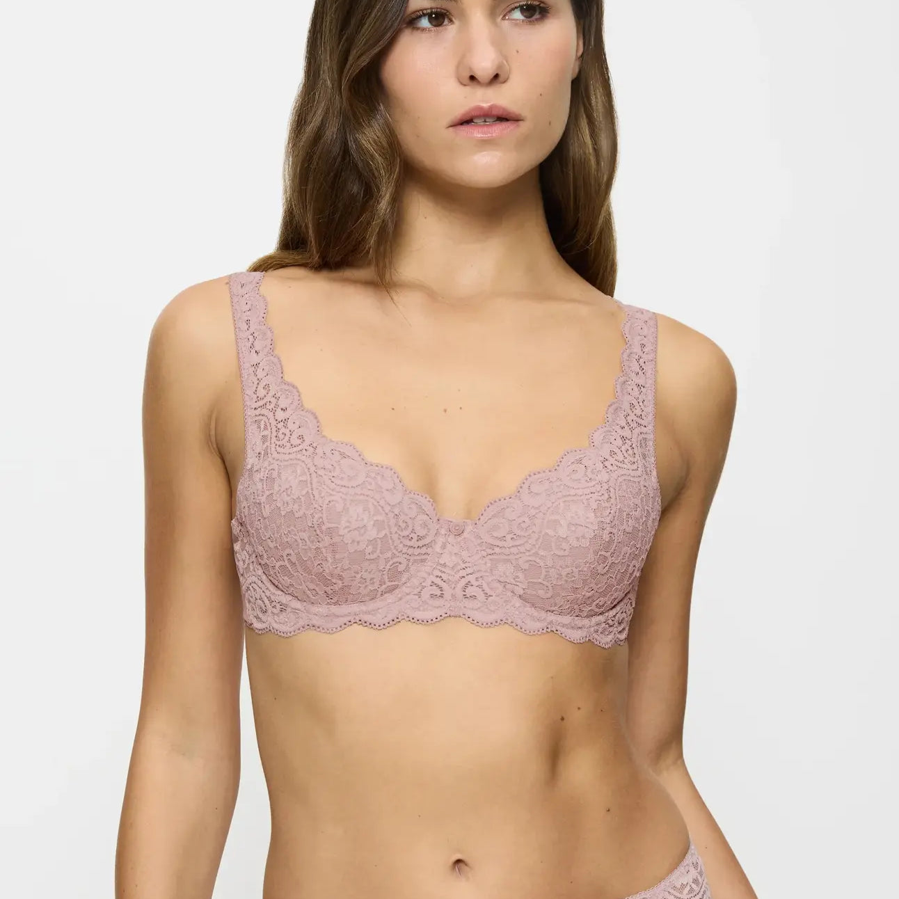 Sävy Mauve Rose on hienostunut ja herkkä vaaleanpunaisen ja liilan vivahde, joka tuo naisellista eleganssia alusvaatevalikoimaasi.