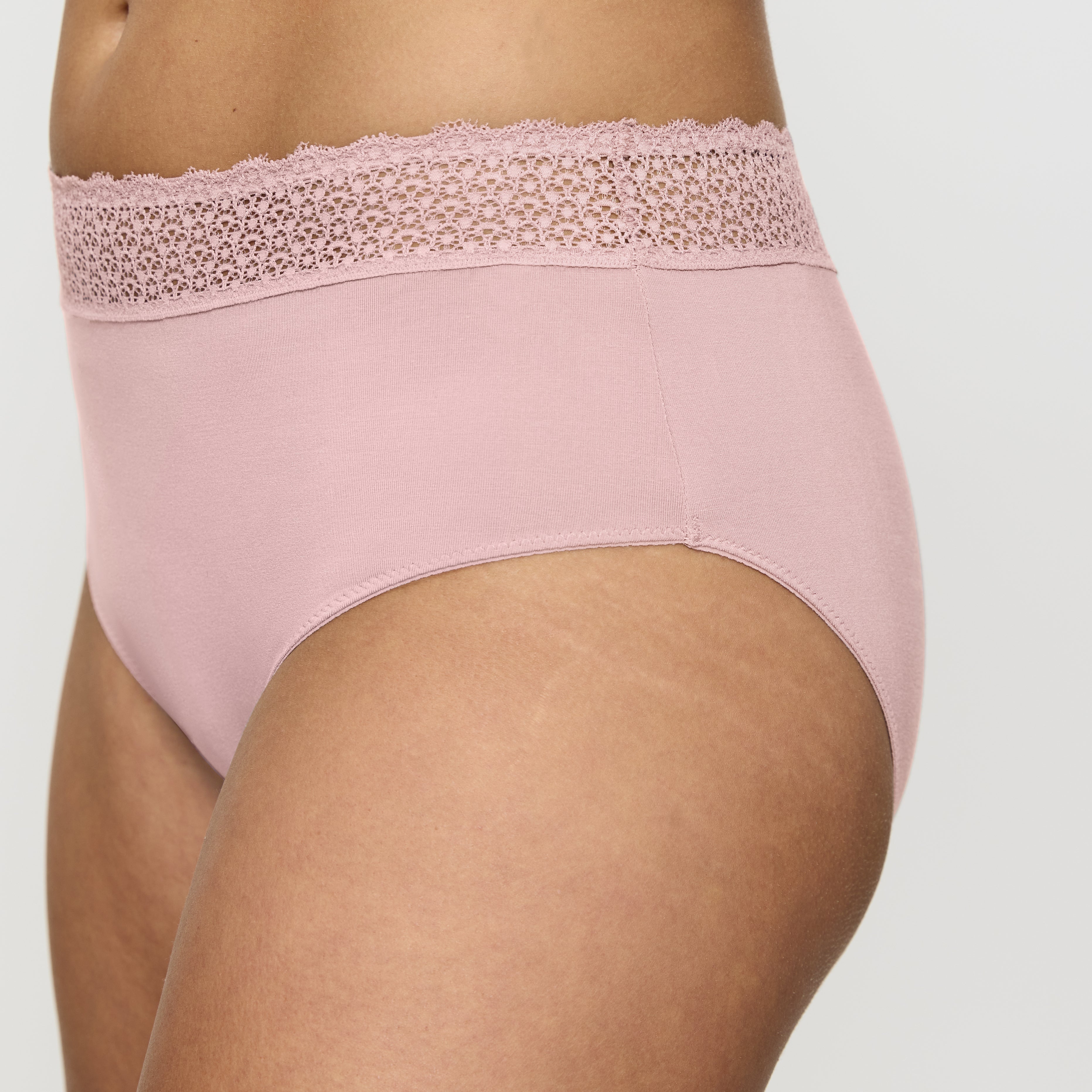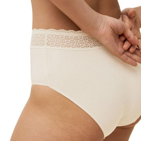 Triumph Feel of Modal Midi alushousu. Korkean mallinen alushousu pehmeää modaali-elastaani materiaalia. Pitsinen yläreuna ja pehmeät saumat.